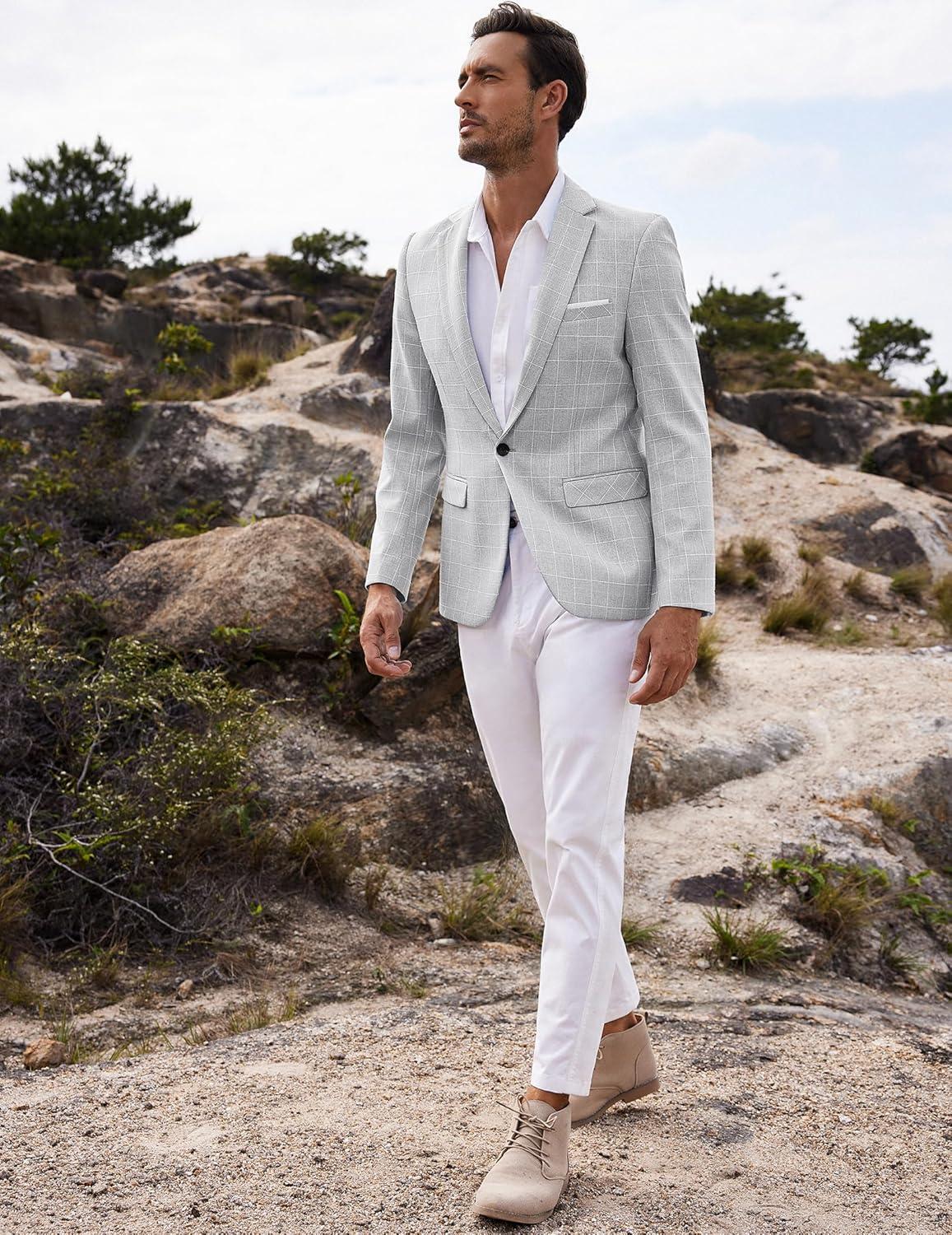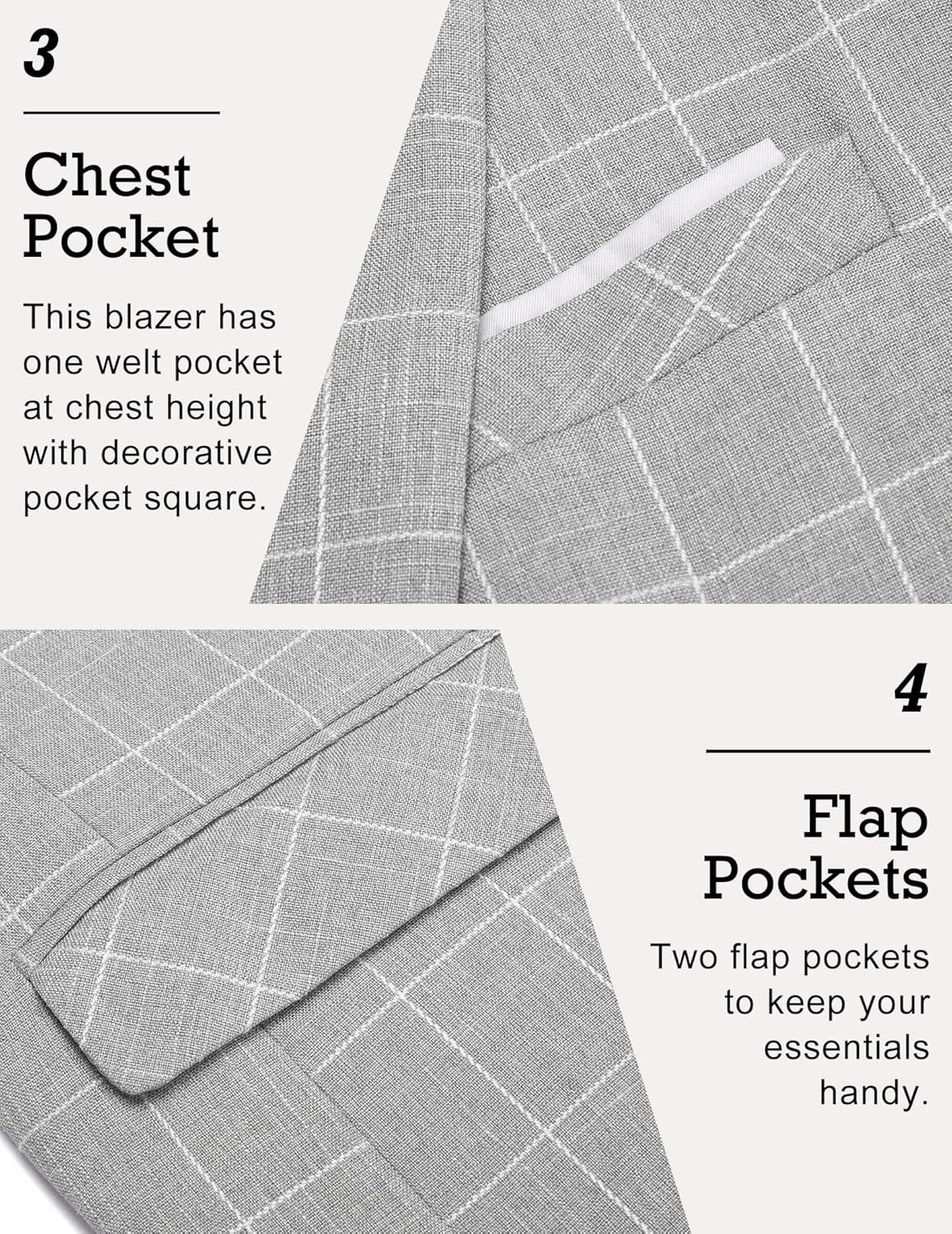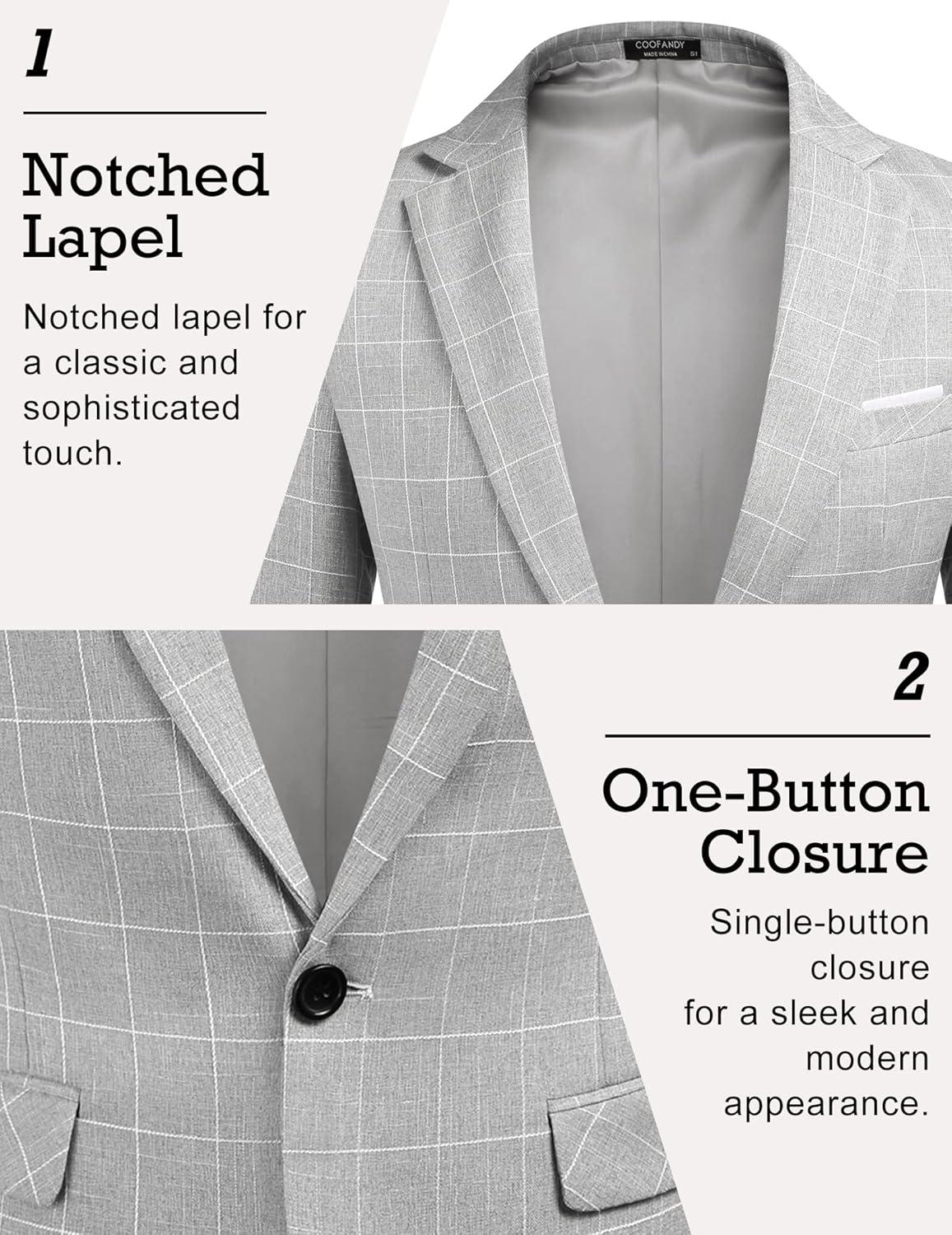 COOFANDY Men’s Blazer Casual Sport Coats Slim Fit One Button Suit Jacket Lightweight Sports Jacket(Plaid Blazer- Light Grey)