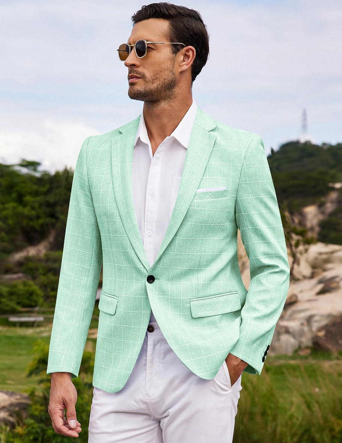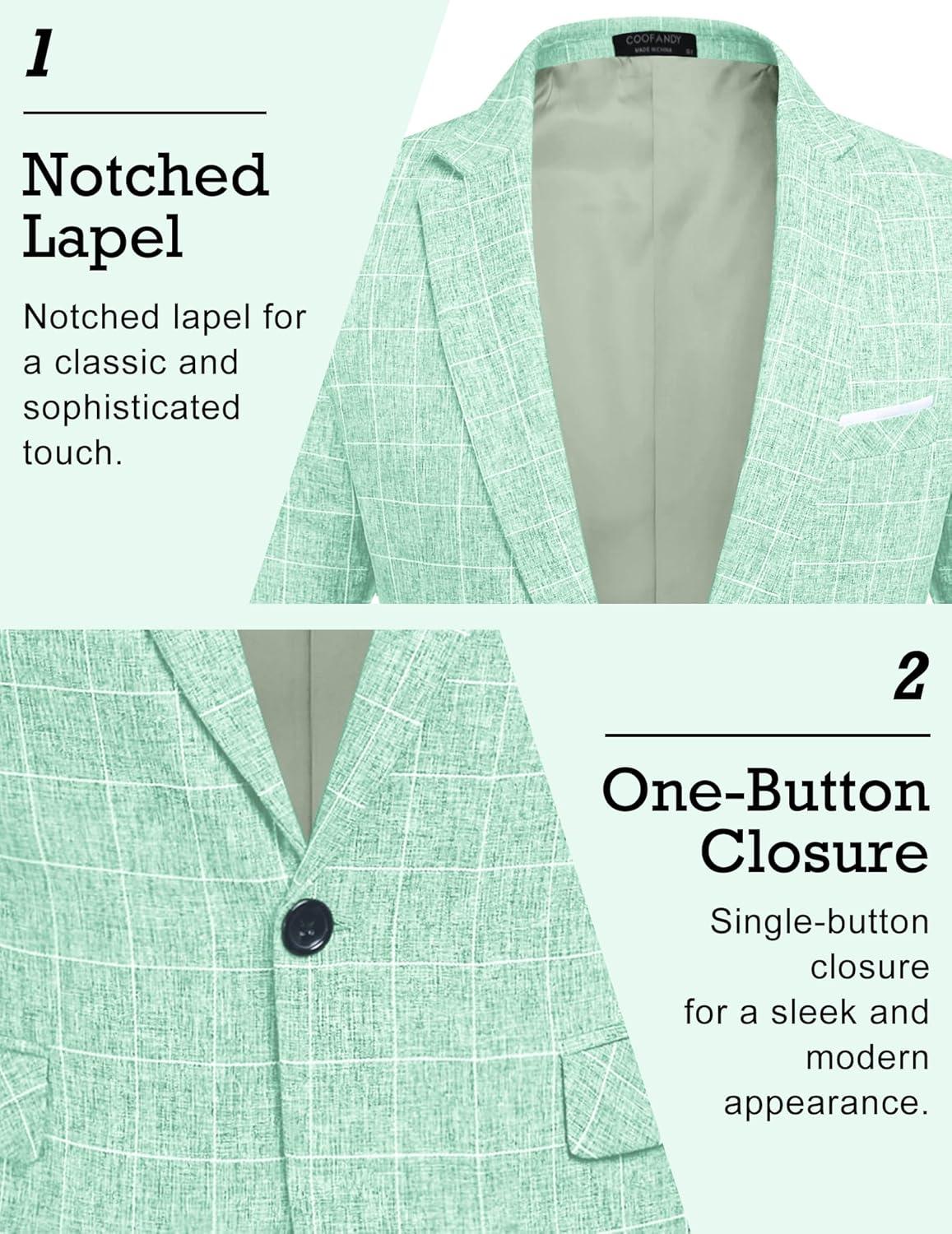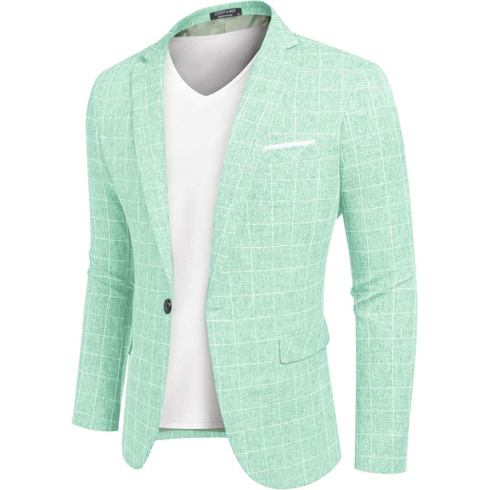 COOFANDY Men’s Blazer Casual Sport Coats Slim Fit One Button Suit Jacket Lightweight Sports Jacket(Plaid Blazer – Mint Green)