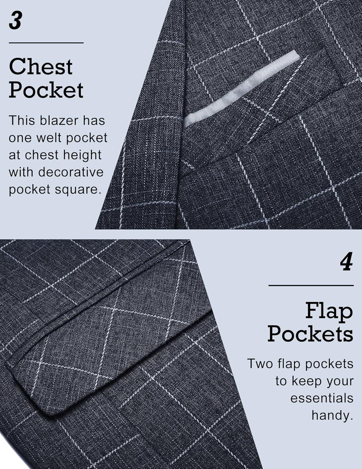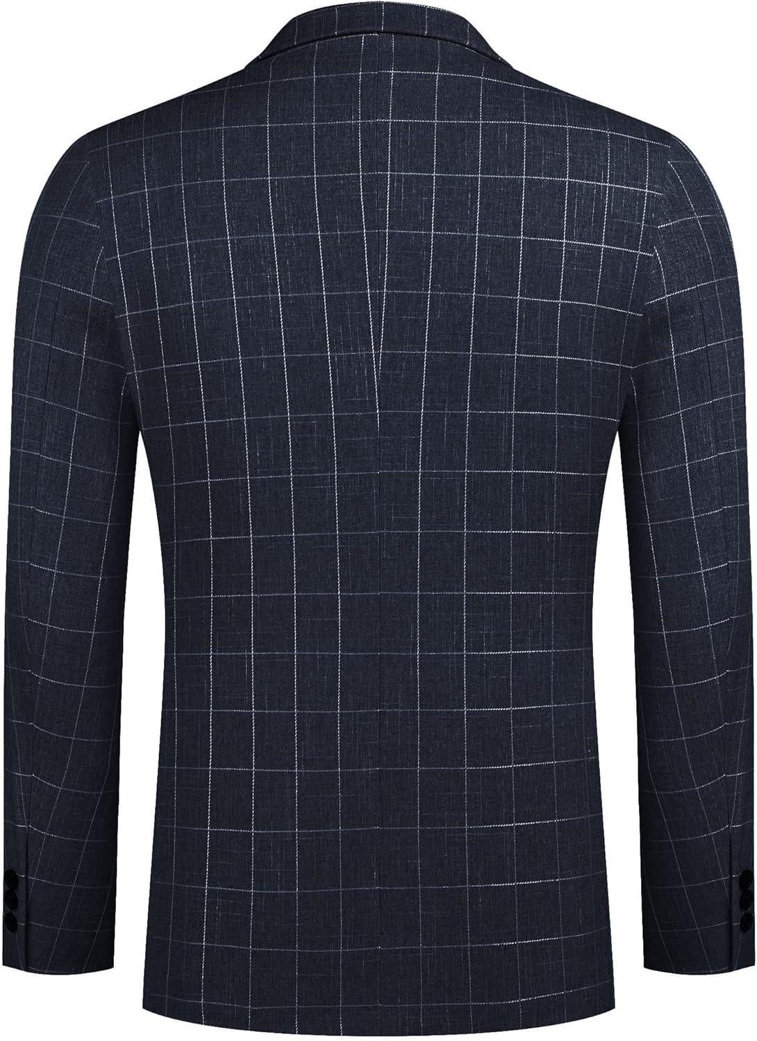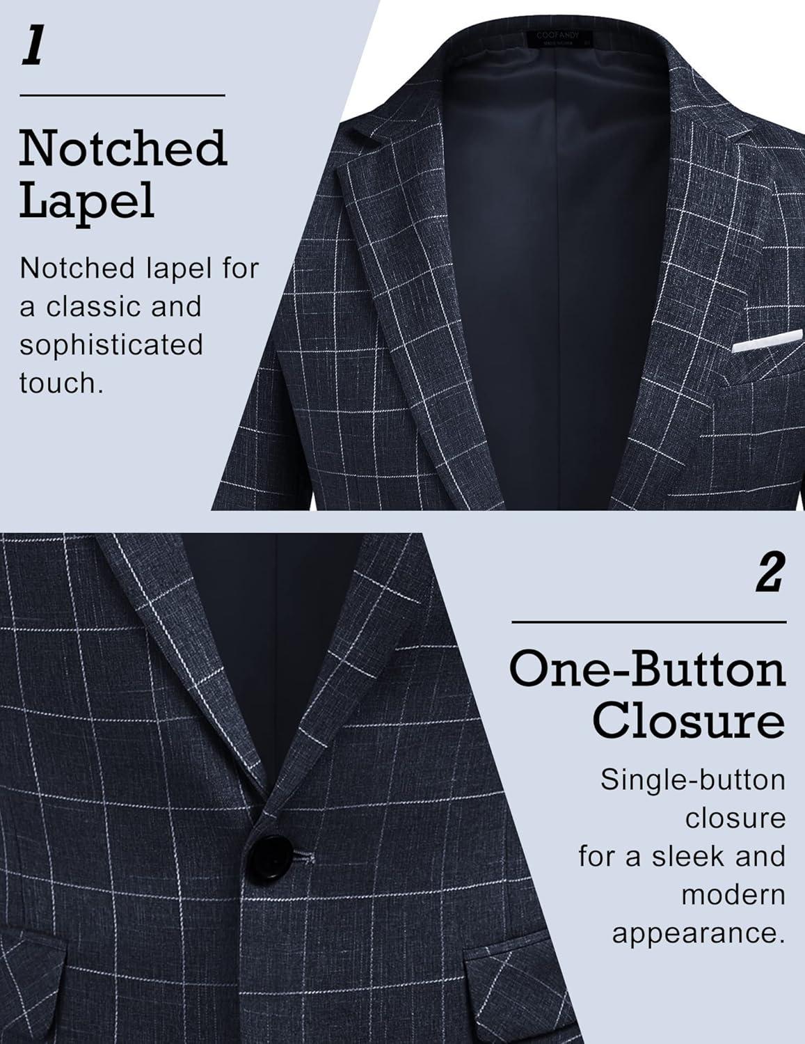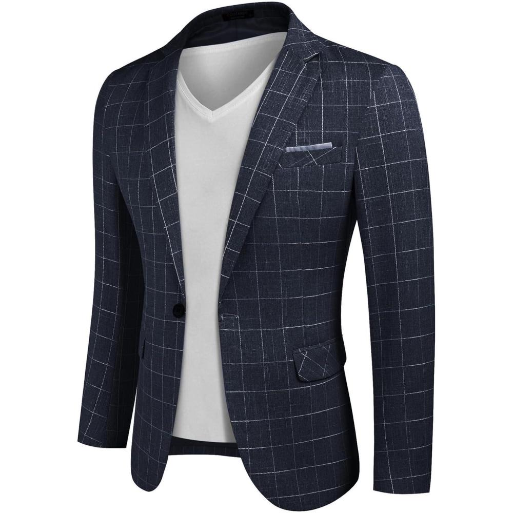 COOFANDY Men’s Blazer Casual Sport Coats Slim Fit One Button Suit Jacket Lightweight Sports Jacket(Plaid Blazer- Navy Blue)