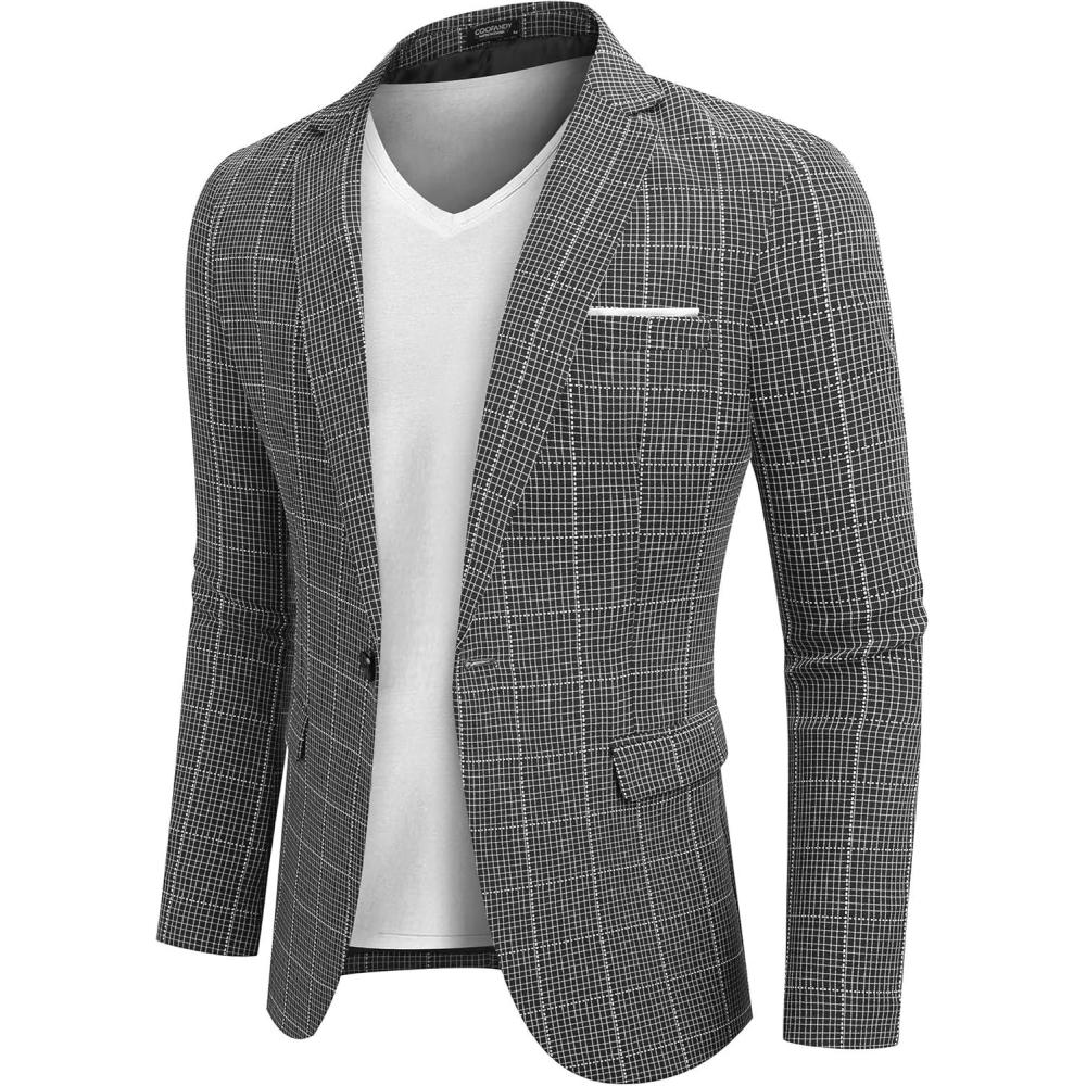COOFANDY Men’s Blazer Casual Sport Coats Slim Fit One Button Suit Jacket Lightweight Sports Jacket(Small Plaid – Black)