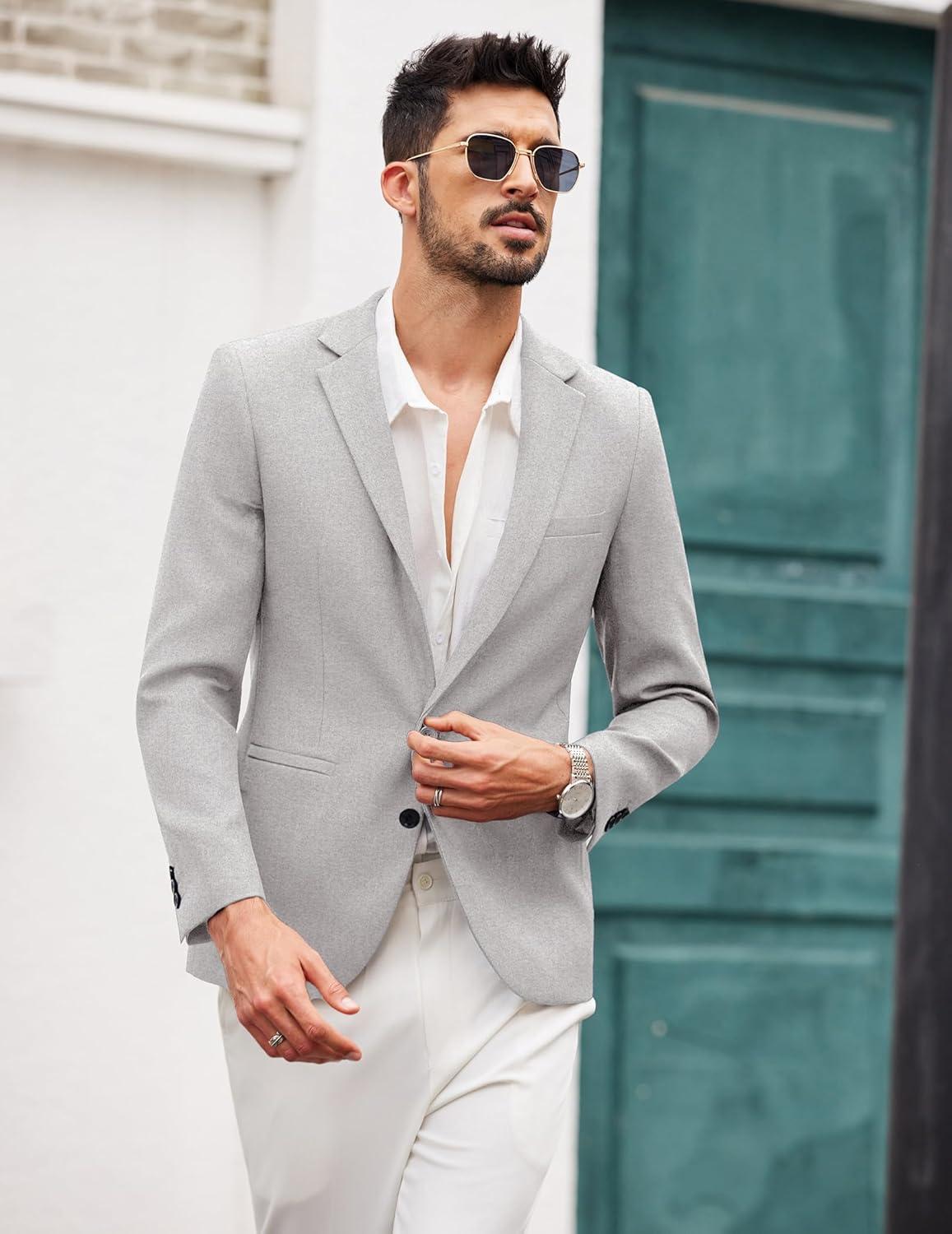 COOFANDY Men’s Blazer Casual Two Buttons Sport Coats Lightweight Suit Jacket(Pastel Gray)