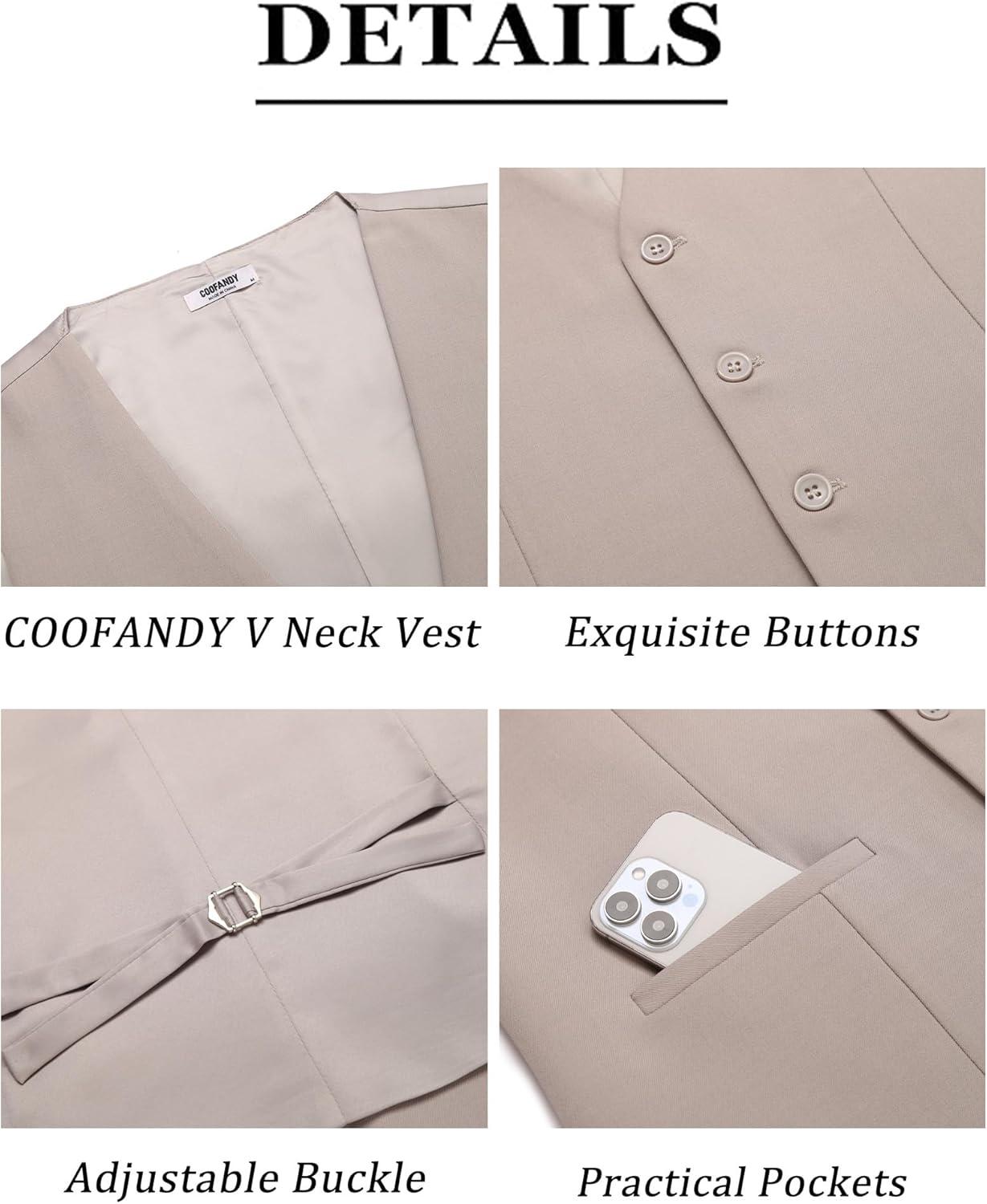 COOFANDY Men’s Business Suit Vests Slim Fit Formal Dress Waistcoat Groomsman Vest For Wedding(Khaki)