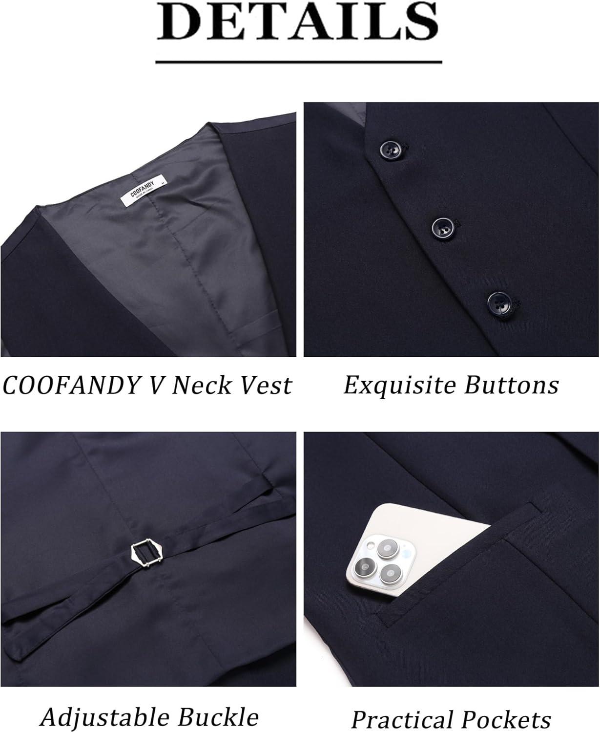 COOFANDY Men’s Business Suit Vests Slim Fit Formal Dress Waistcoat Groomsman Vest For Wedding(Navy Blue)