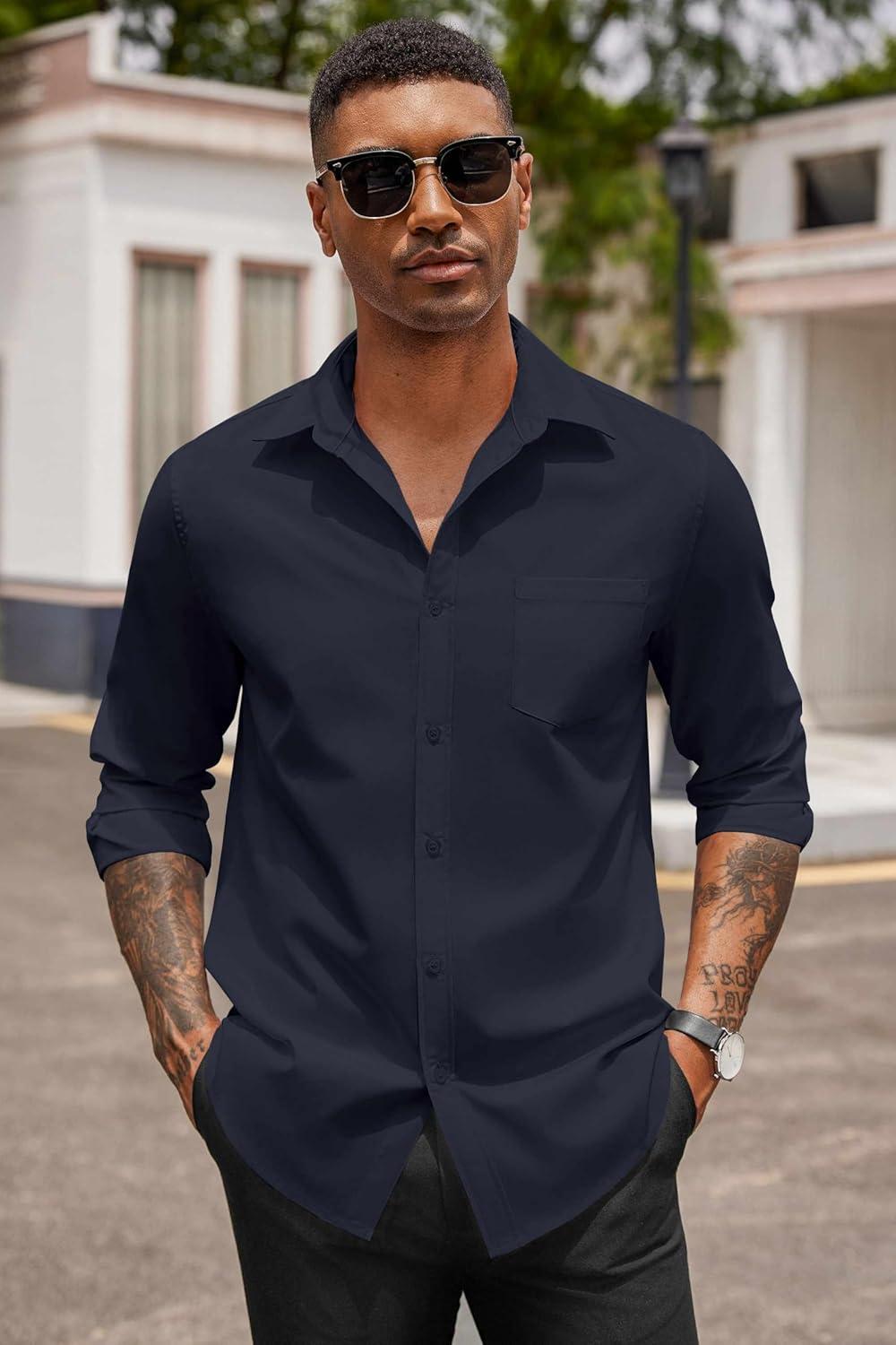 COOFANDY Men’s Button Down Long Sleeve Shirt Casual Untucked Dress Shirt Regular Fit Wedding Shirts(Black Iris)