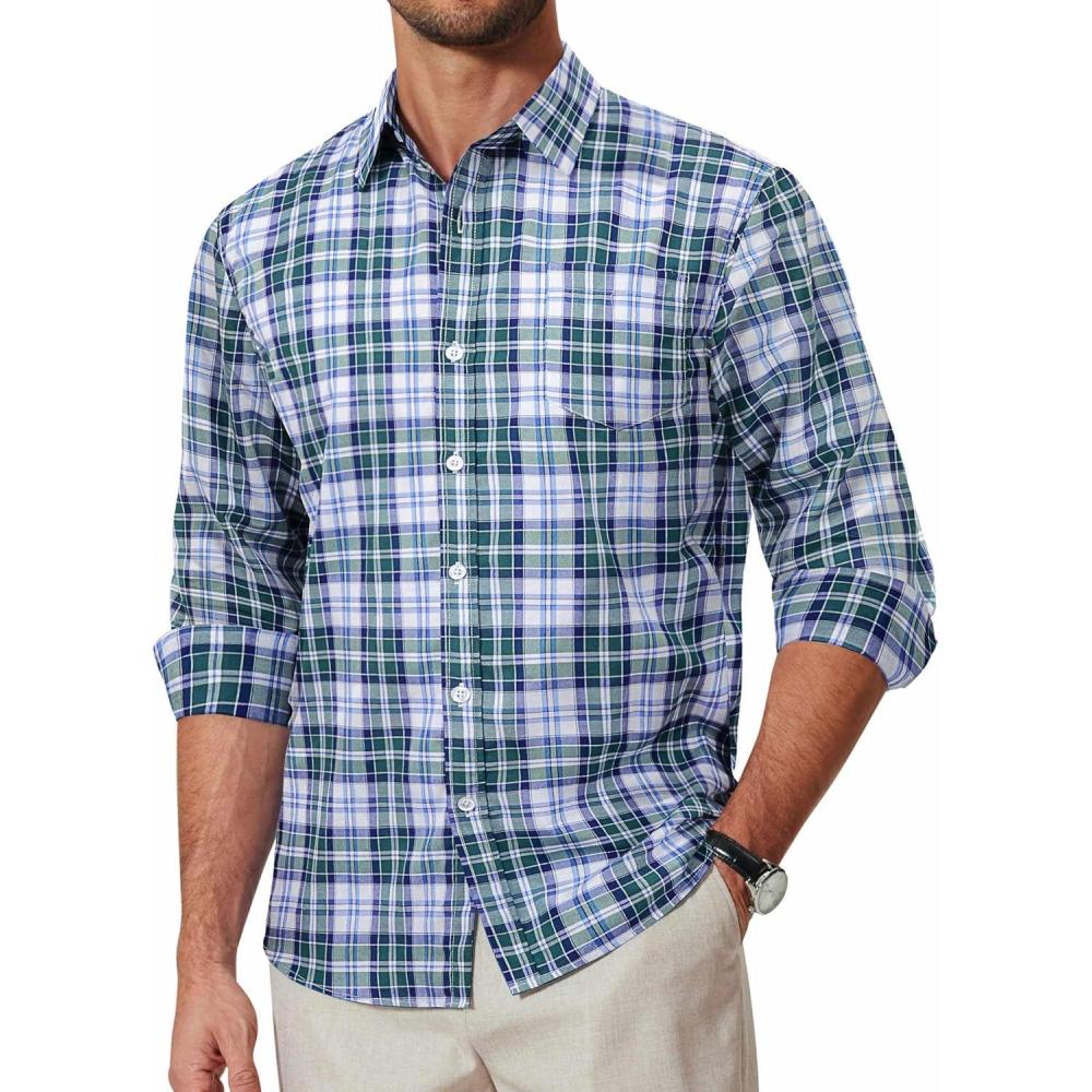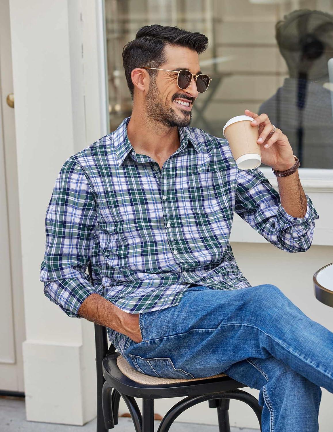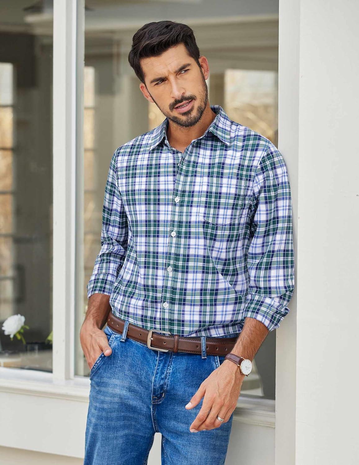 COOFANDY Mens Button Down Shirt Cotton Long Sleeves Dress Shirt Wrinkle Free Casual Plaid Shirt(Black Blue Plaid)