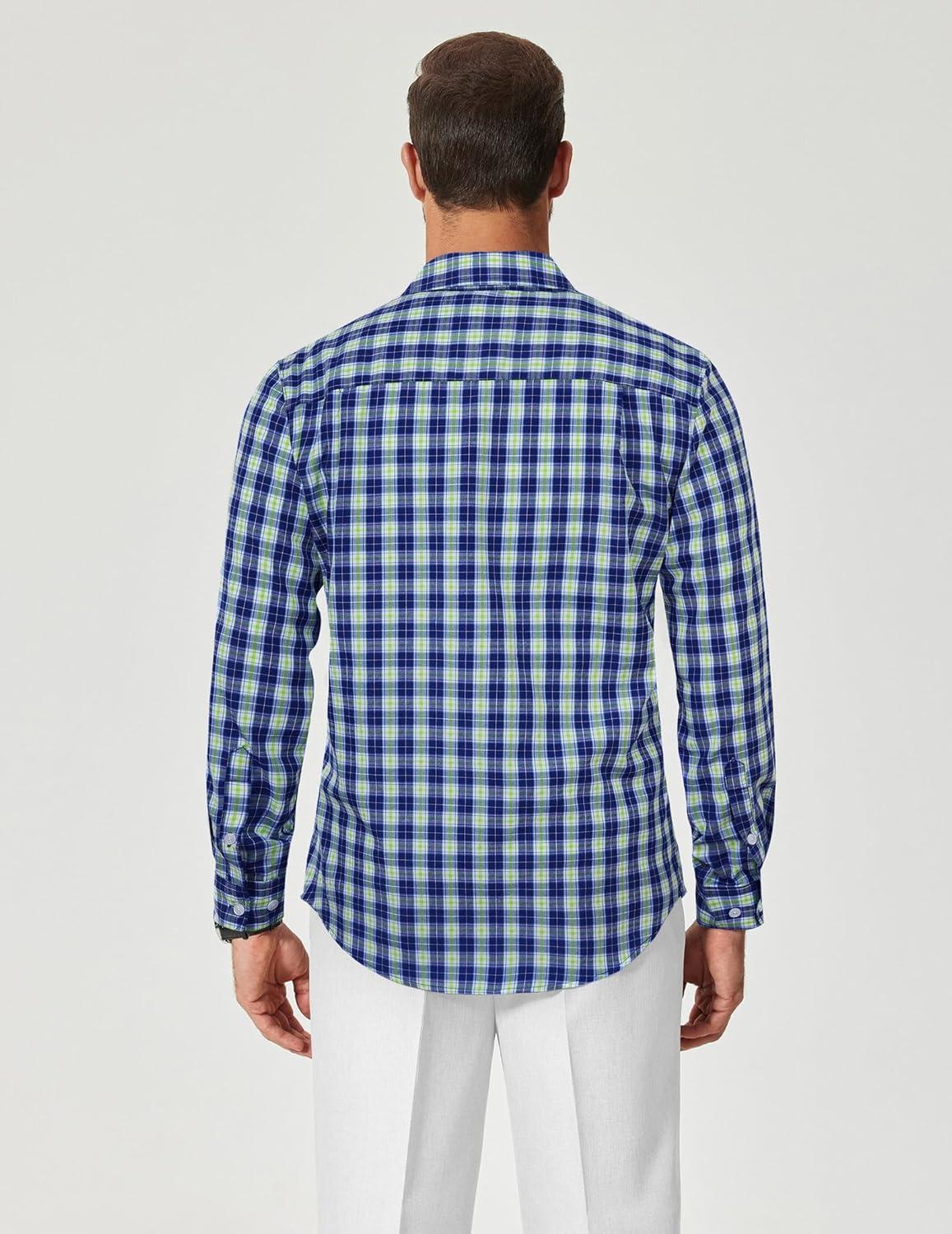 COOFANDY Mens Button Down Shirt Cotton Long Sleeves Dress Shirt Wrinkle Free Casual Plaid Shirt(Navy Blue Green Plaid)