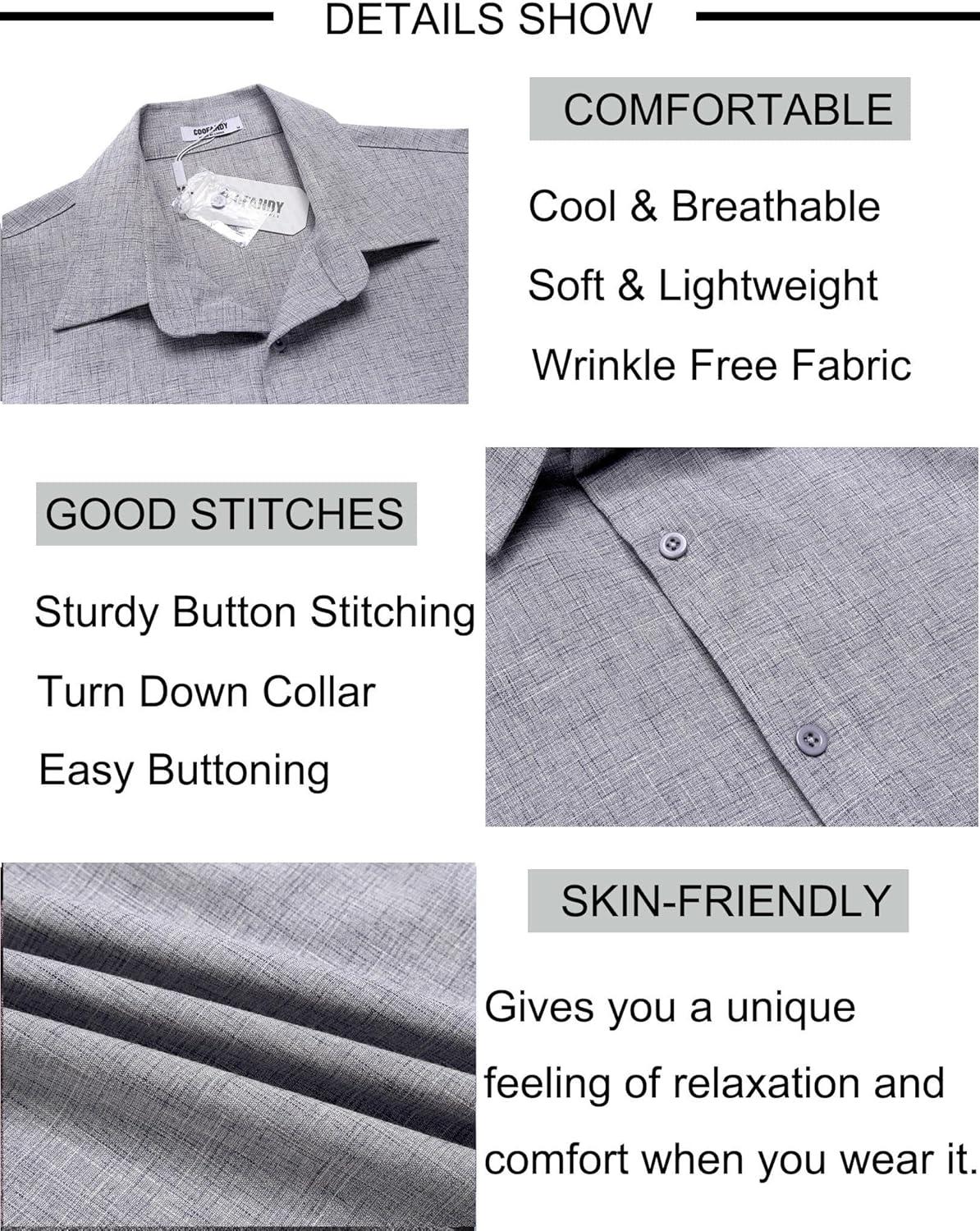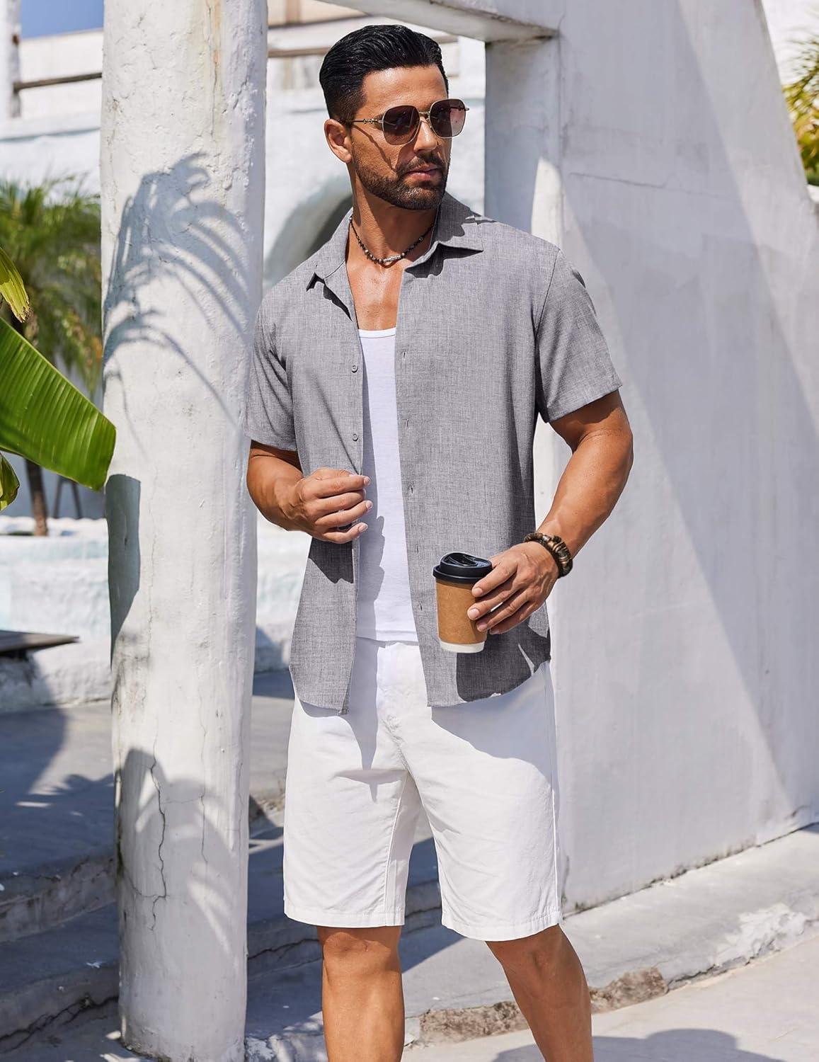 COOFANDY Mens Button Down Shirt Short Sleeve Casual Shirts Beach Summer Linen Shirts Wedding Vacation Shirt(Light Grey)