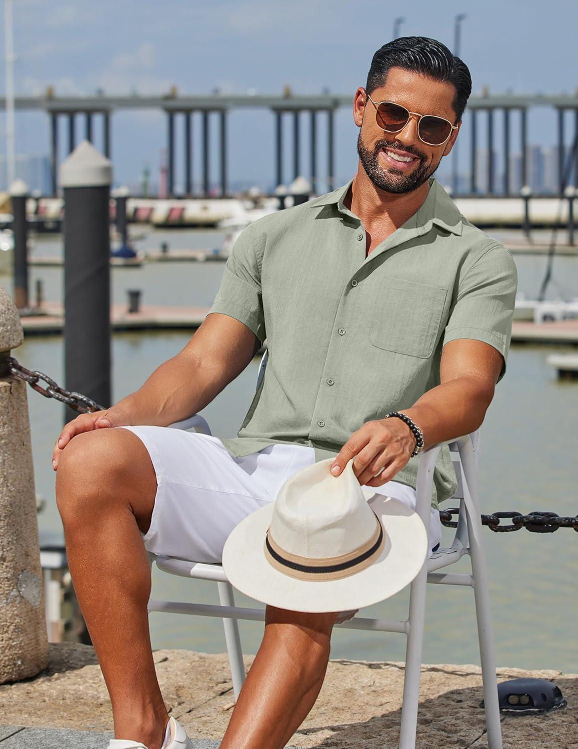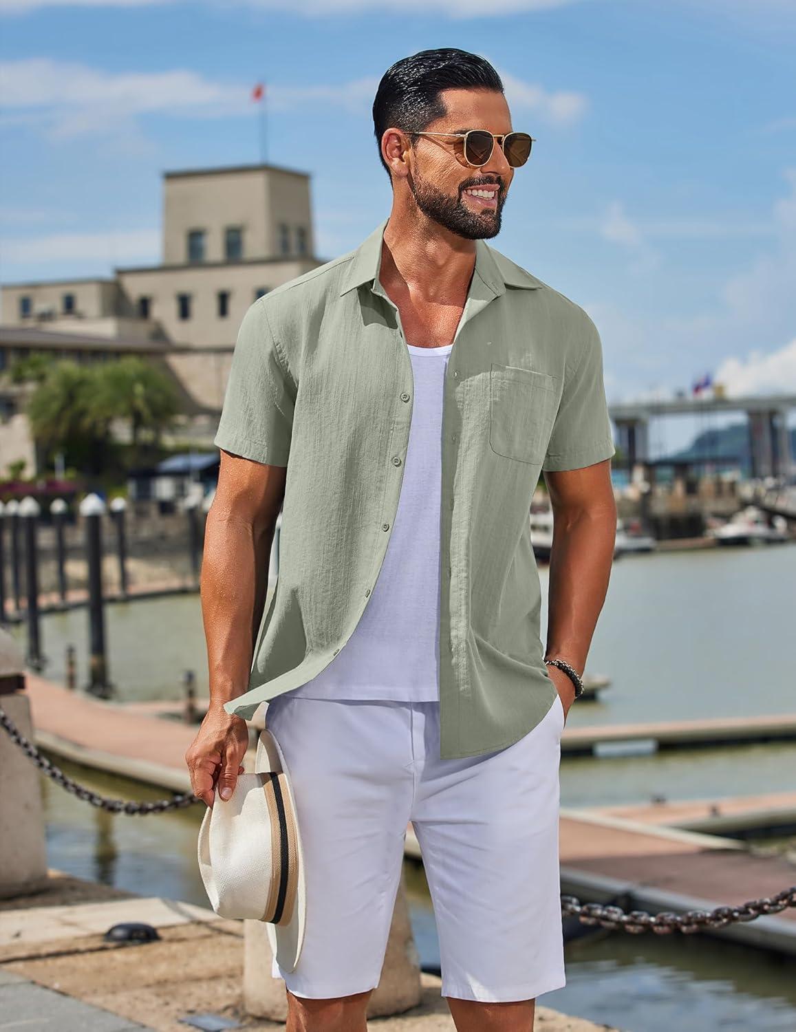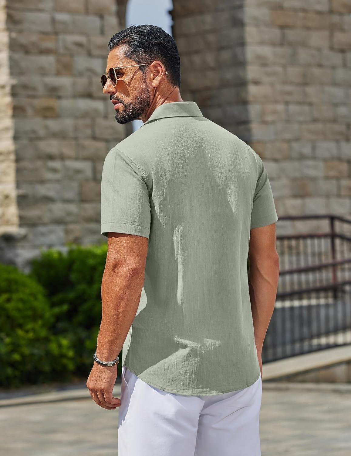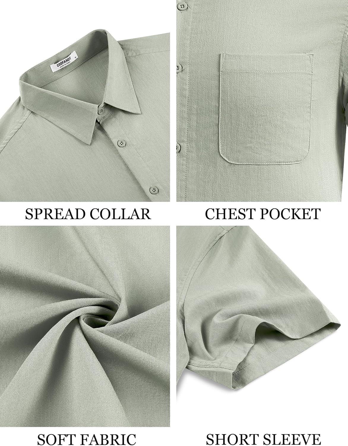 COOFANDY Men’s Button Down Shirts Casual Short Sleeve Linen Shirt Summer Beach Top with Pocket(Sage Green)