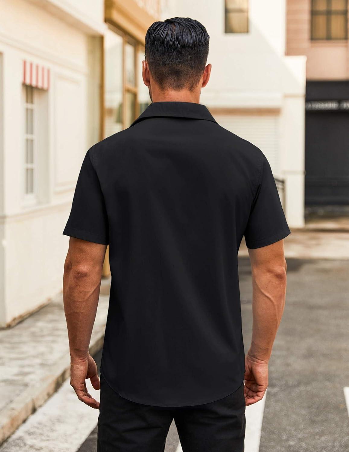 COOFANDY Men’s Button Down Shirts Short Sleeve Casual Dress Shirts Untucked Summer Shirt with Pocket(Black)