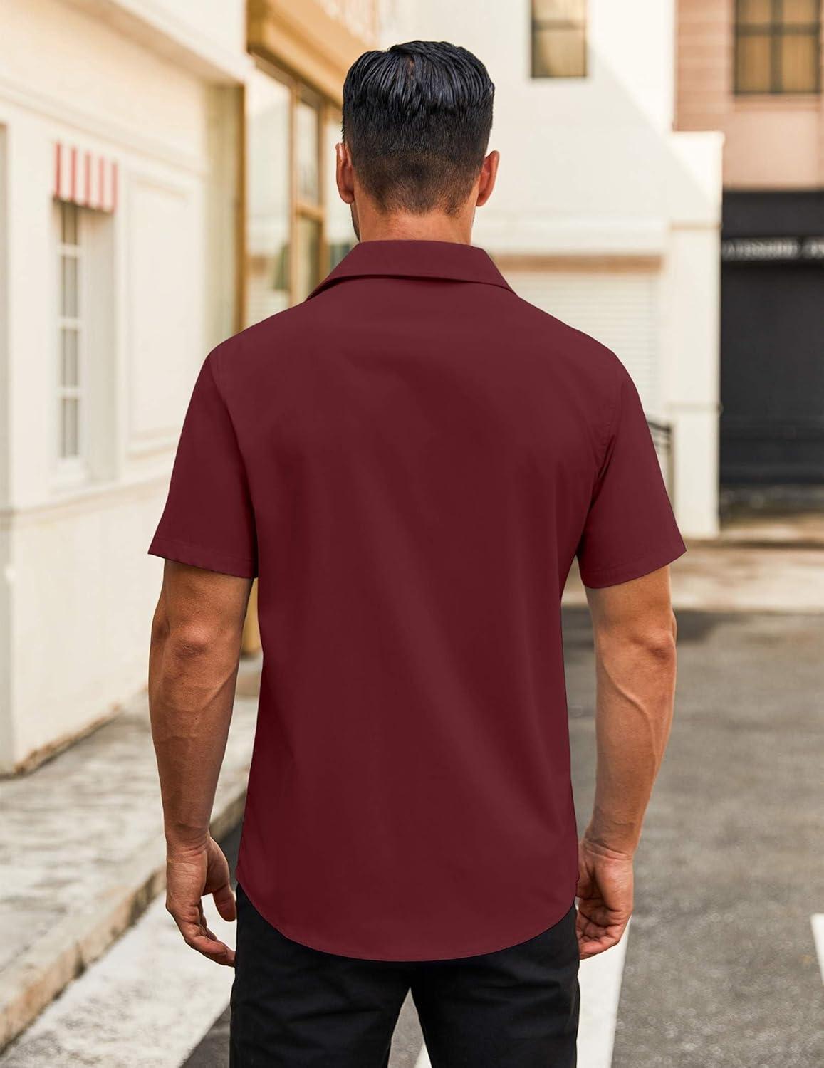 COOFANDY Men’s Button Down Shirts Short Sleeve Casual Dress Shirts Untucked Summer Shirt with Pocket(Wine Red)