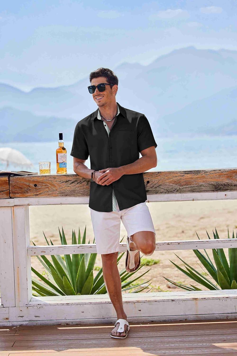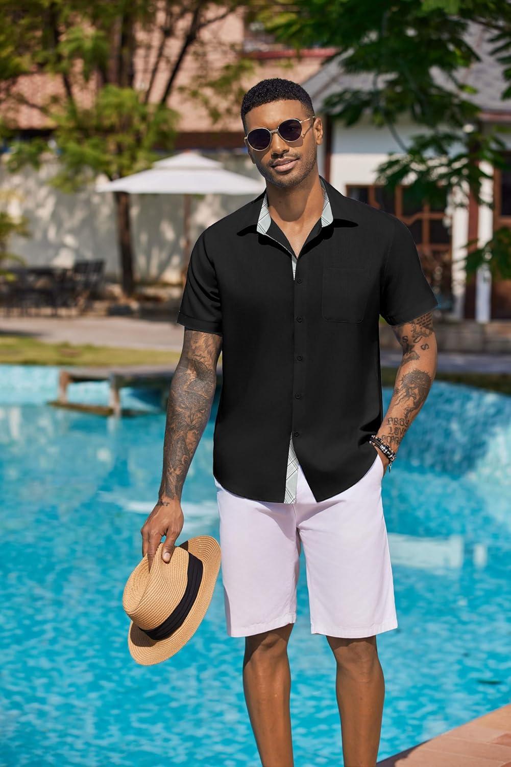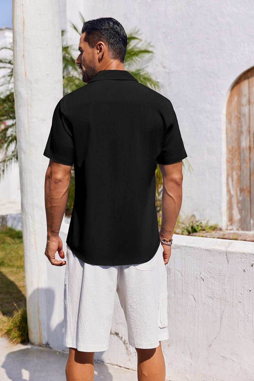COOFANDY Mens Button Down Shirts Short Sleeve Casual Linen Shirts for Men Summer Beach Wedding Shirt(Black)