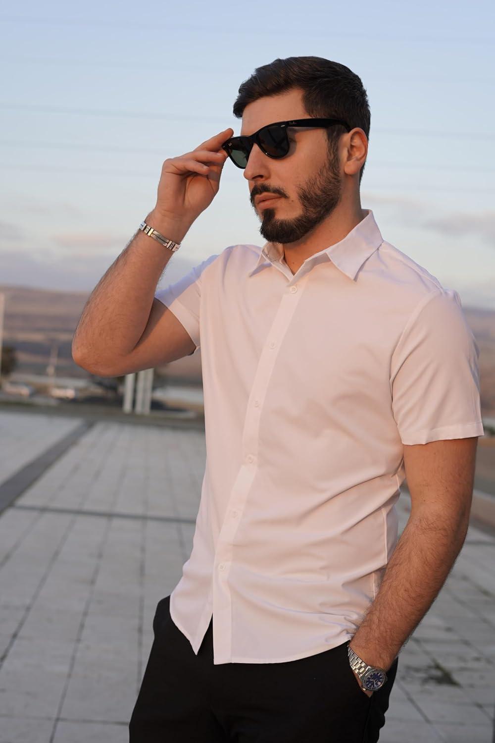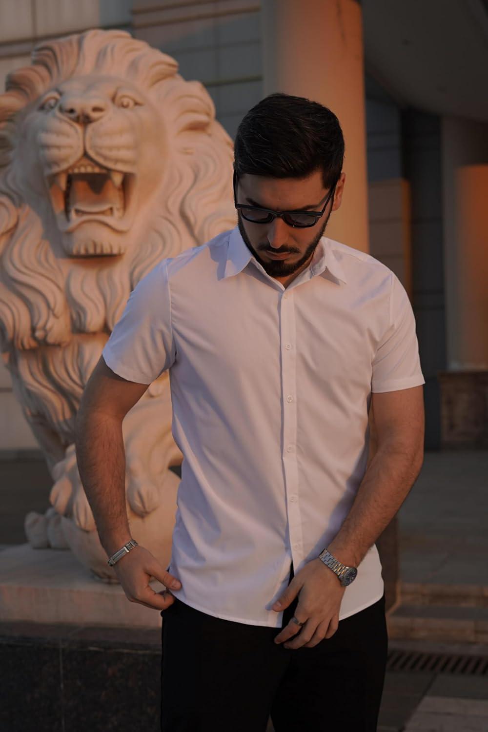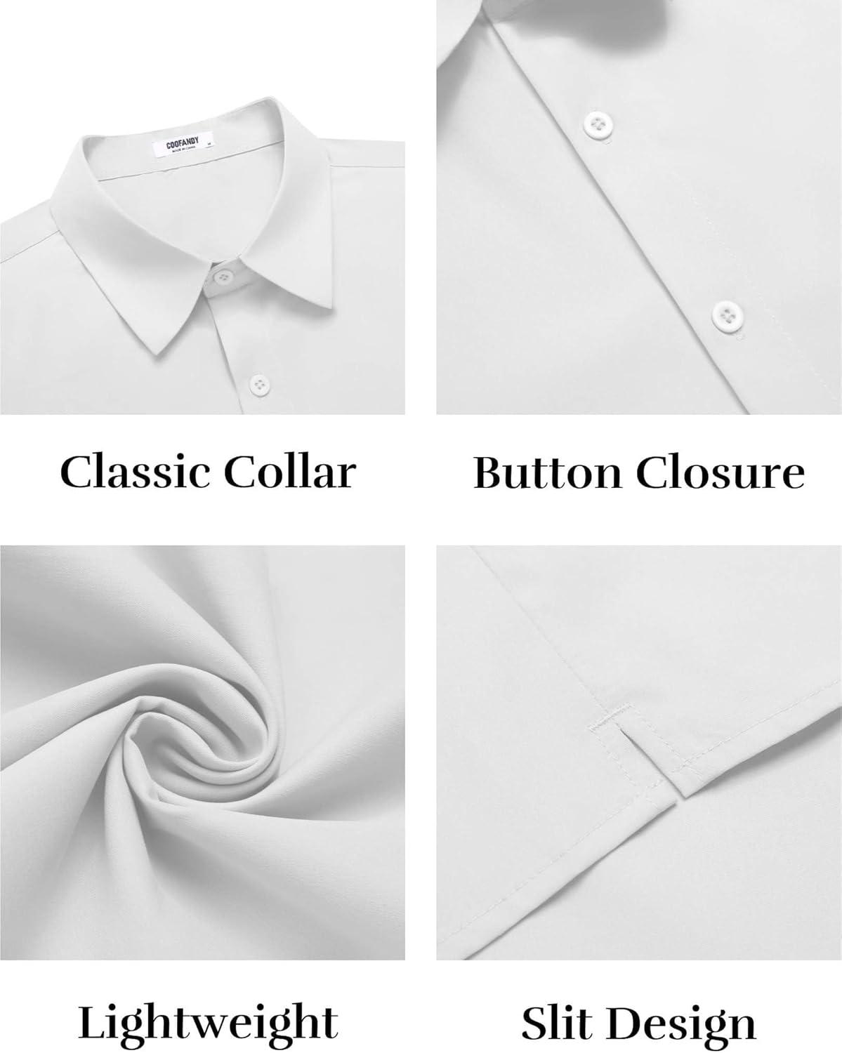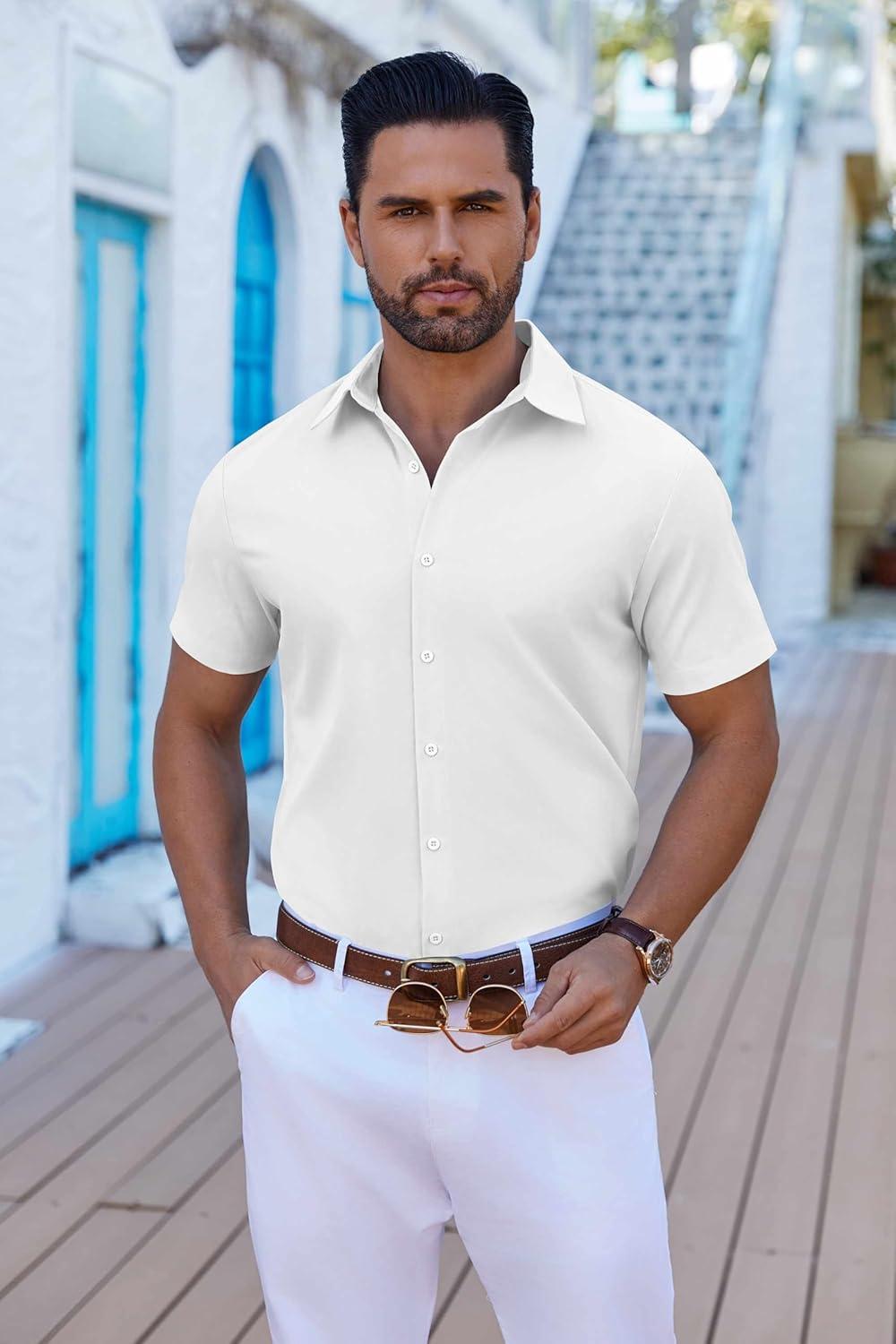COOFANDY Mens Button Down Shirts Short Sleeve Casual Shirt Summer Untucked Dress Shirts(White)