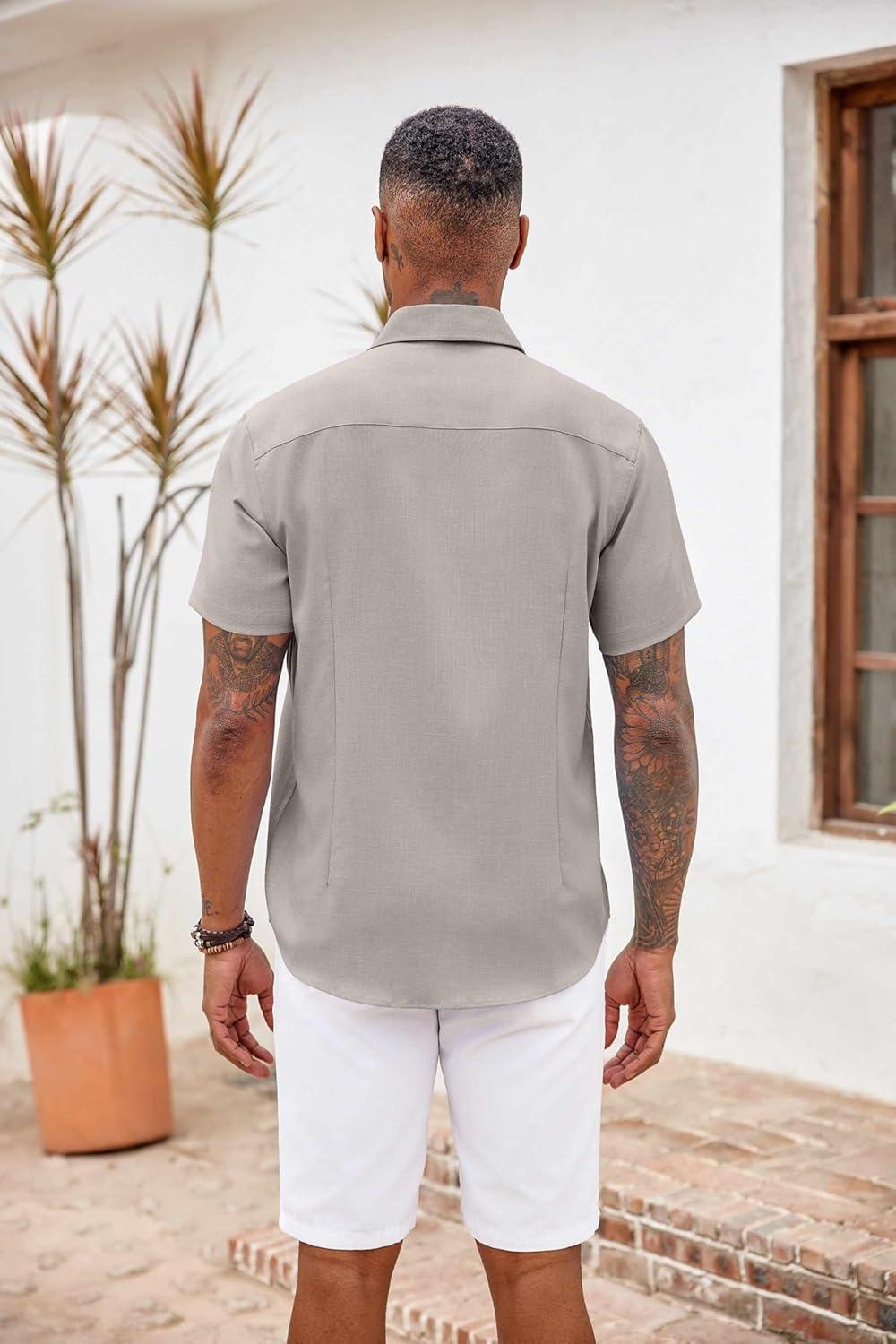 COOFANDY Men’s Button Down Shirts Short Sleeve Casual Shirts Summer Beach Shirts Vacation Wedding Shirts with Pocket(Grey)