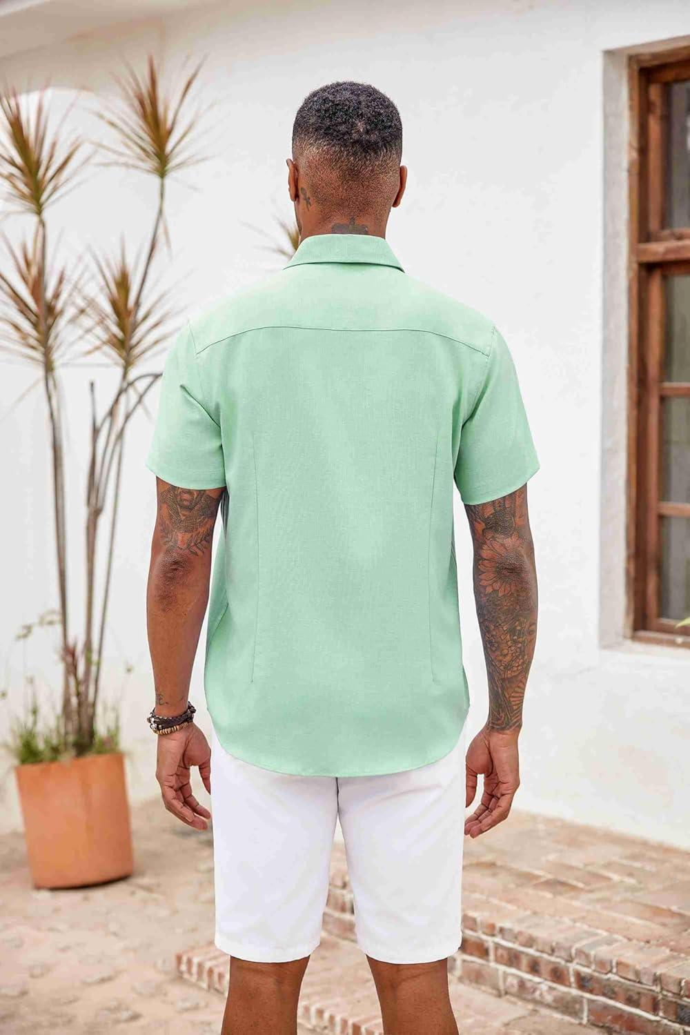 COOFANDY Men’s Button Down Shirts Short Sleeve Casual Shirts Summer Beach Shirts Vacation Wedding Shirts with Pocket(Ice Green)