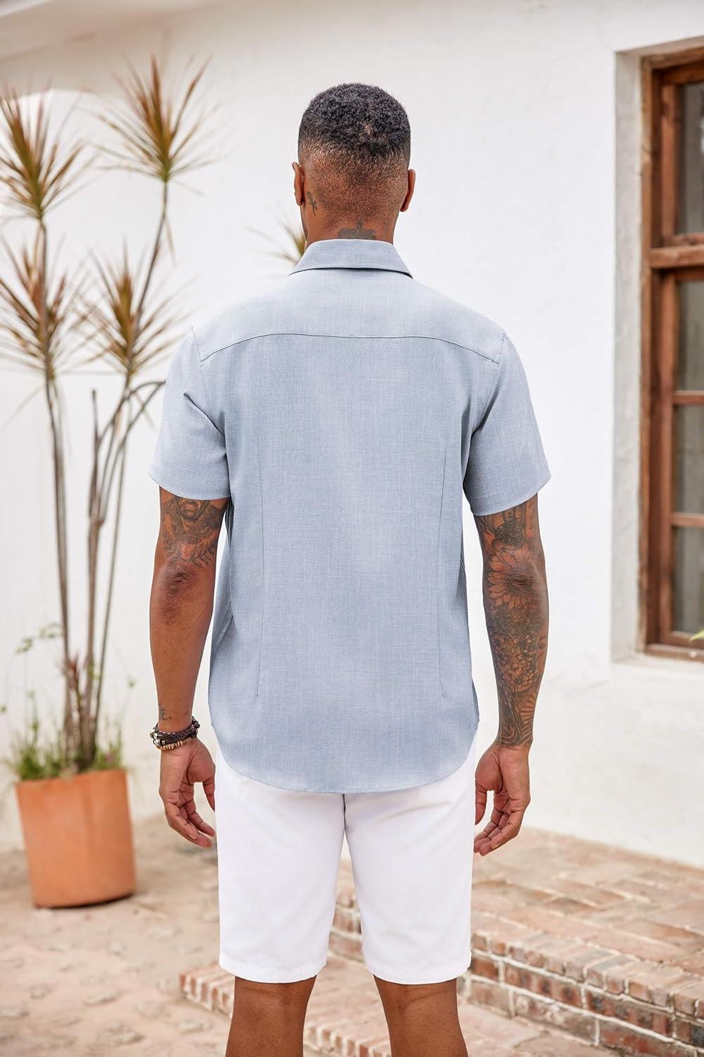 COOFANDY Men’s Button Down Shirts Short Sleeve Casual Shirts Summer Beach Shirts Vacation Wedding Shirts with Pocket(Lake Blue)