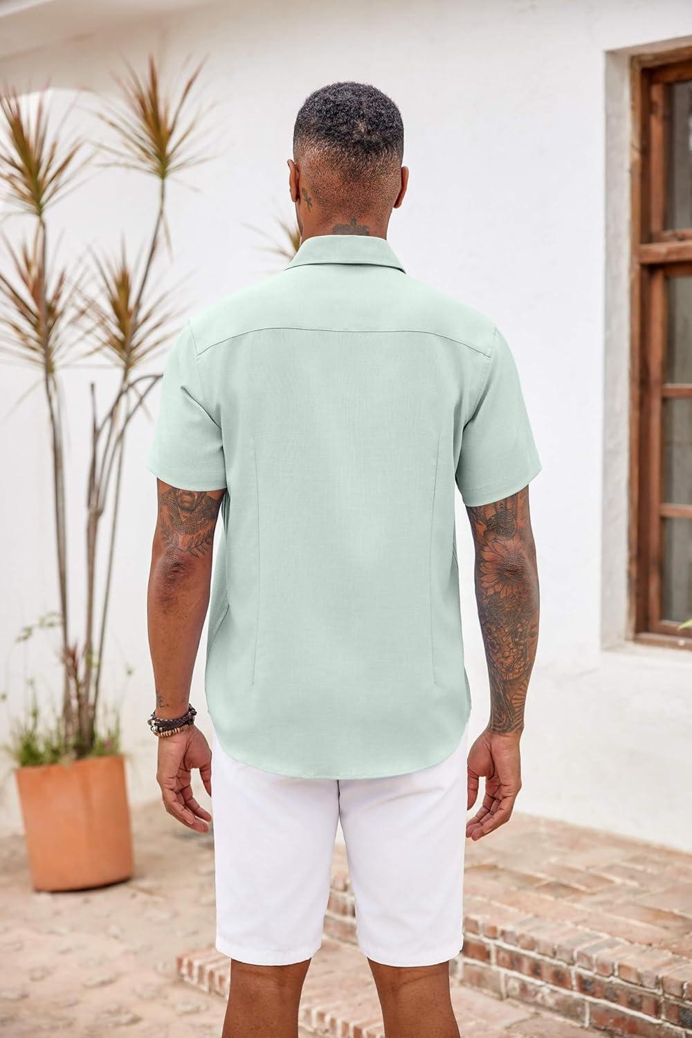 COOFANDY Men’s Button Down Shirts Short Sleeve Casual Shirts Summer Beach Shirts Vacation Wedding Shirts with Pocket(Light Green)