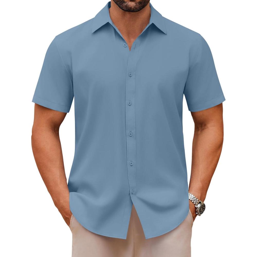 COOFANDY Men’s Button Down Shirts Short Sleeve Casual Summer Beach Shirts Vacation Wedding Shirts(Captain Blue)
