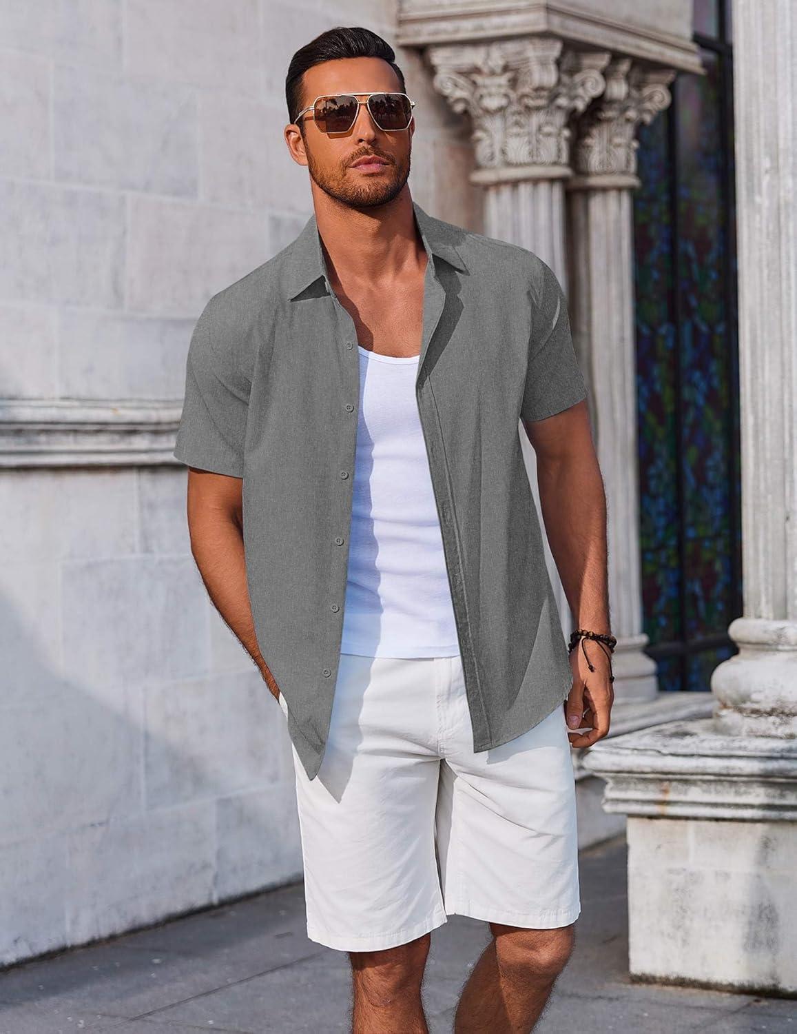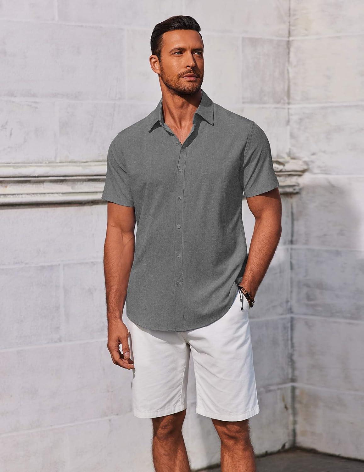 COOFANDY Men’s Button Down Shirts Short Sleeve Casual Summer Beach Shirts Vacation Wedding Shirts(Dark Grey)