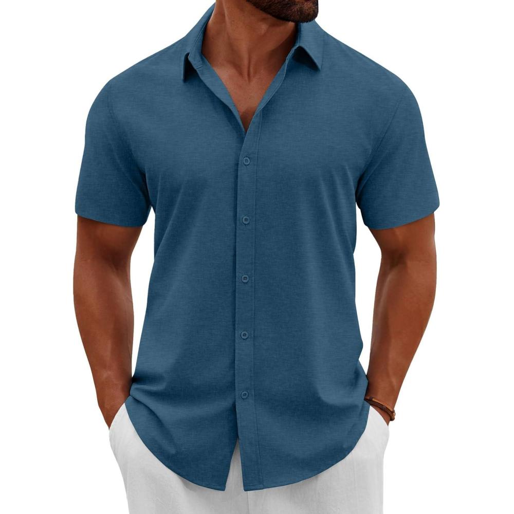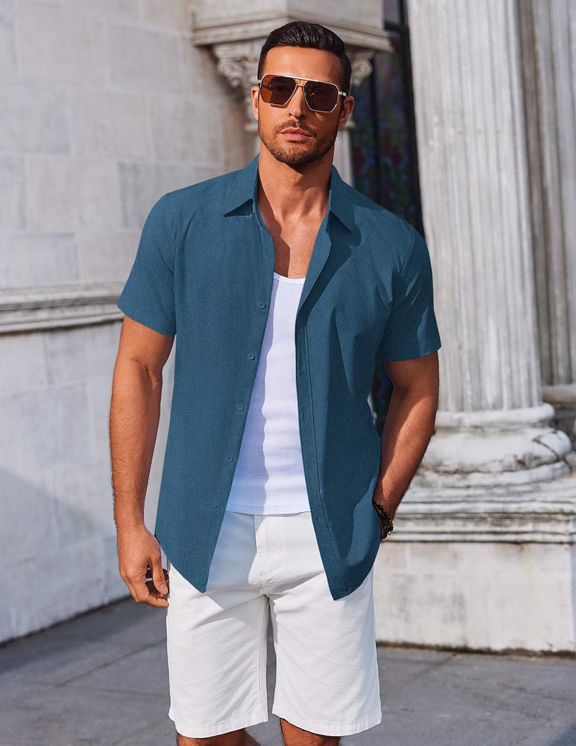 COOFANDY Men’s Button Down Shirts Short Sleeve Casual Summer Beach Shirts Vacation Wedding Shirts(Deep Blue)