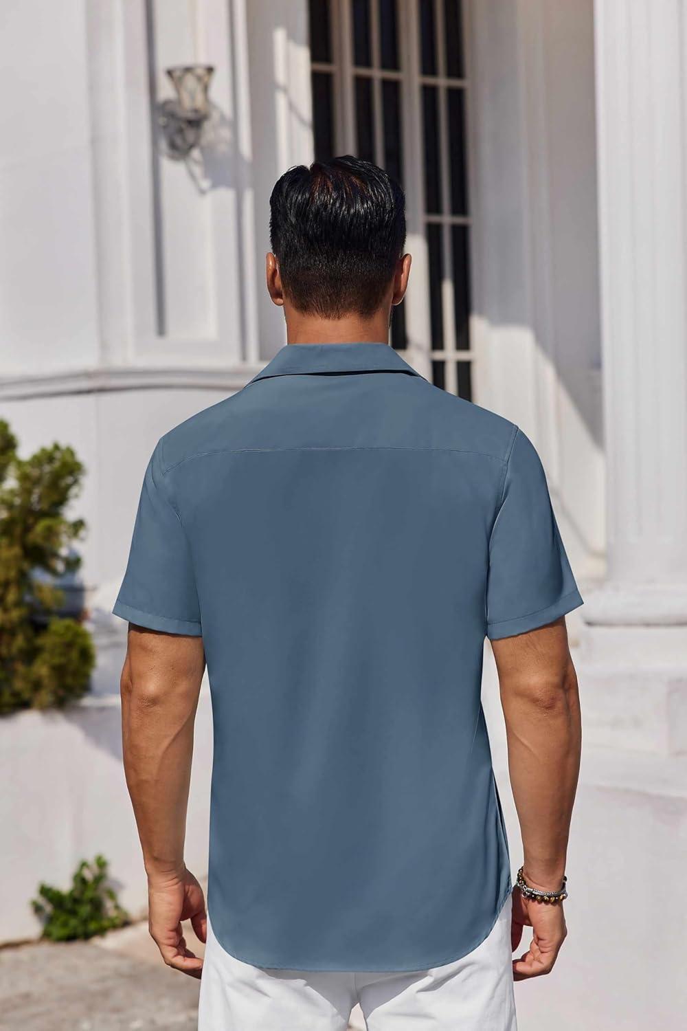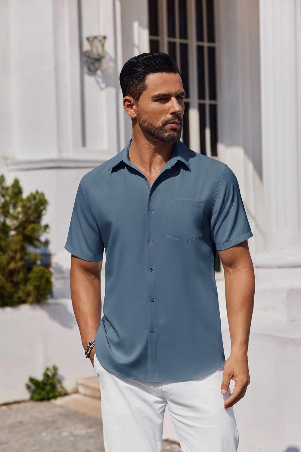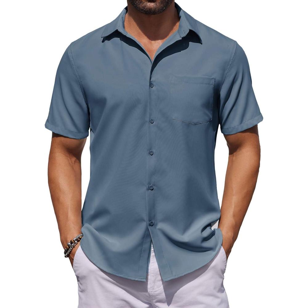 COOFANDY Mens Button Down Shirts Short Sleeve Stain Shield Dress Shirts Business Casual Shirt with Pocket(Blue)