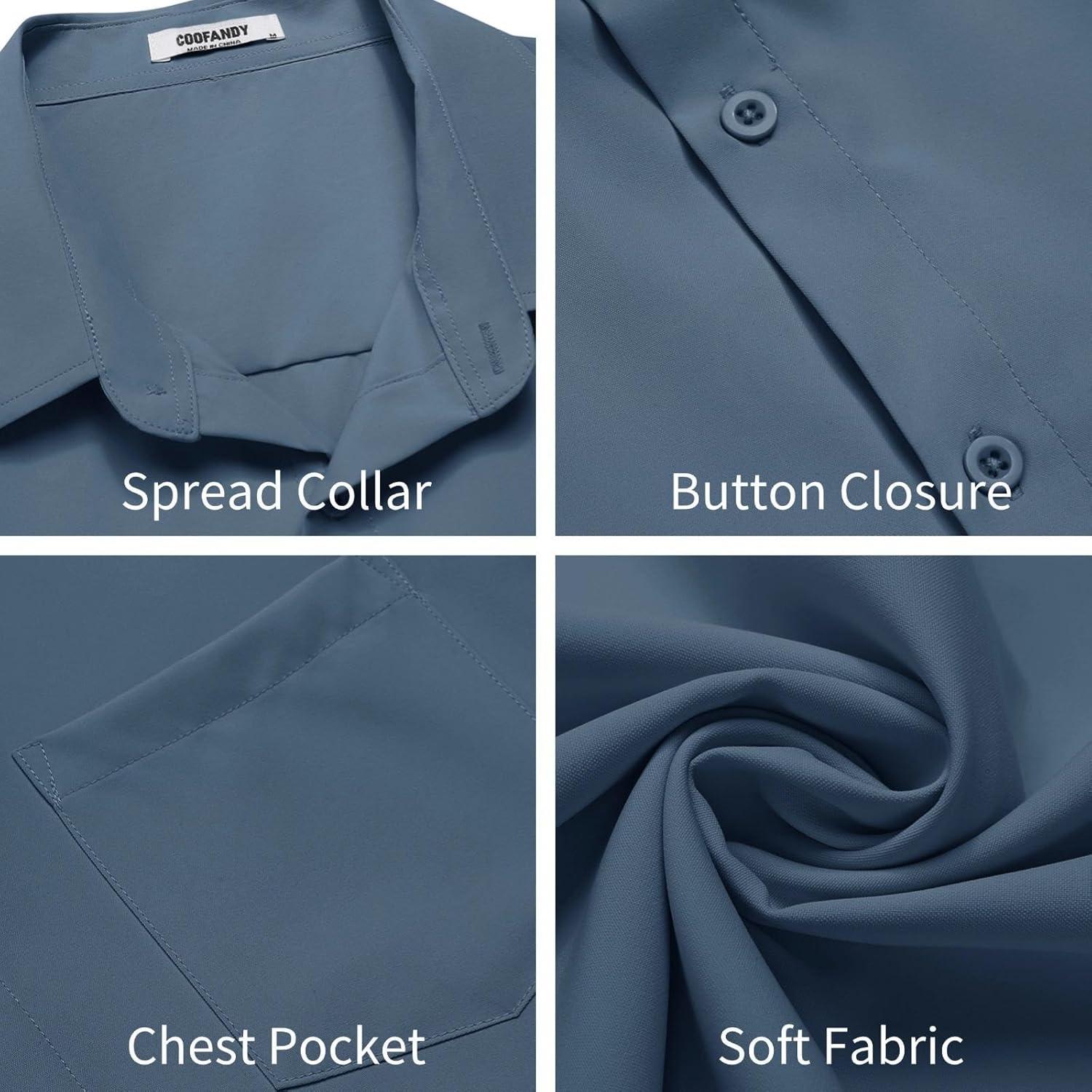 Be the first to review “COOFANDY Mens Button Down Shirts Short Sleeve Stain Shield Dress Shirts Business Casual Shirt with Pocket(Blue)” Cancel reply