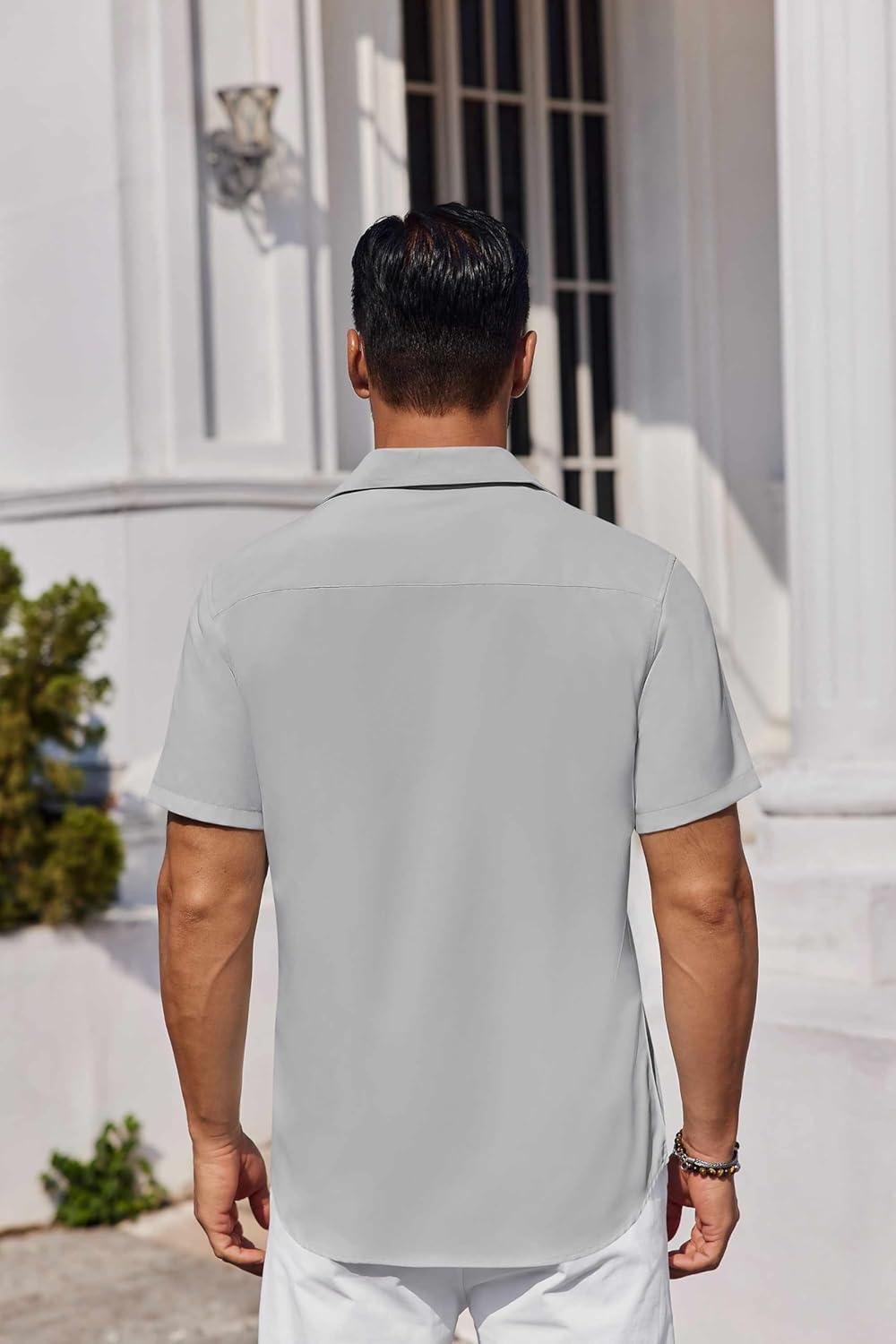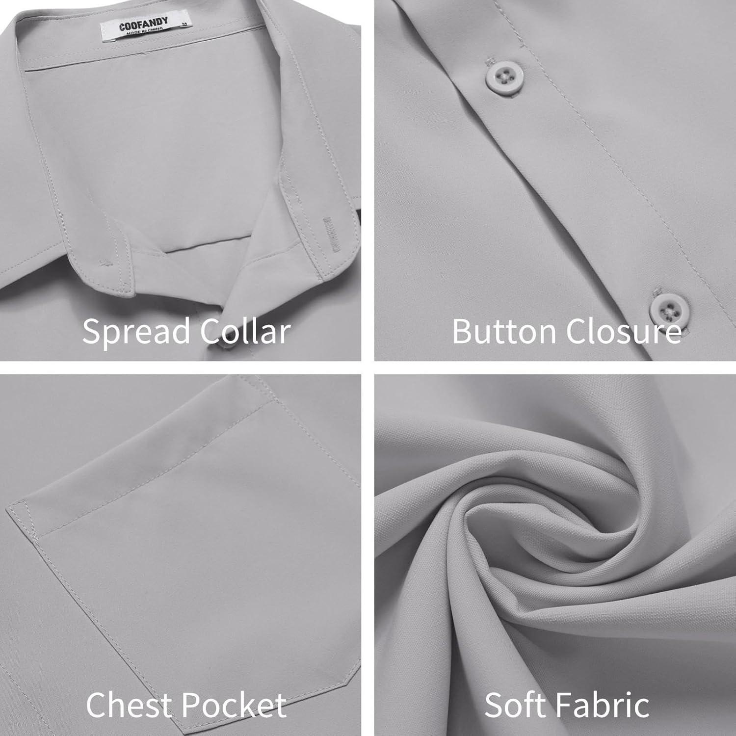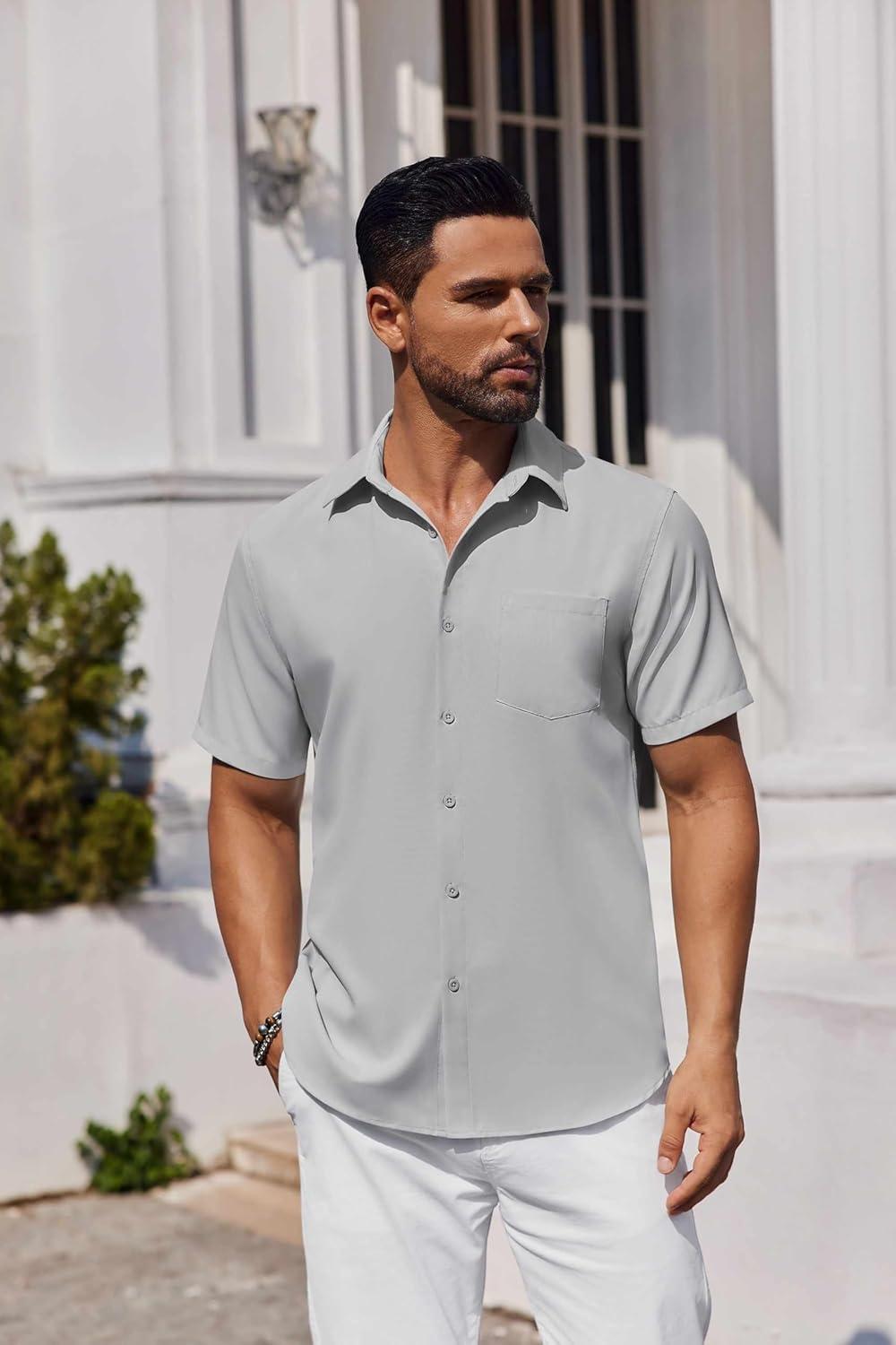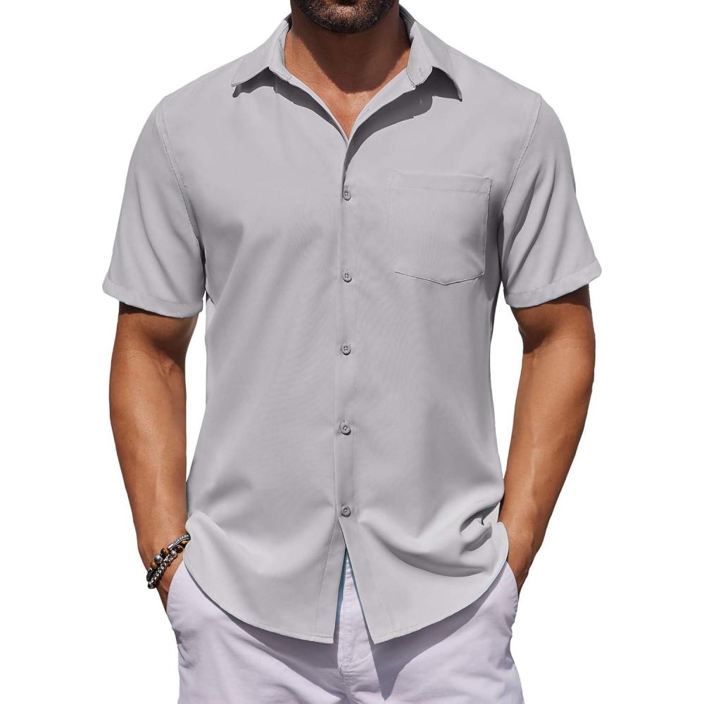 COOFANDY Mens Button Down Shirts Short Sleeve Stain Shield Dress Shirts Business Casual Shirt with Pocket(Grey)