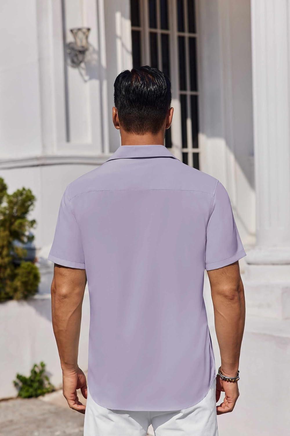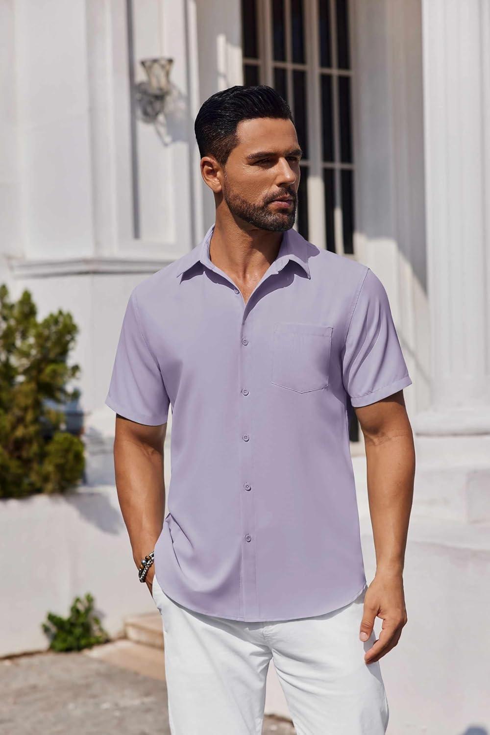 COOFANDY Mens Button Down Shirts Short Sleeve Stain Shield Dress Shirts Business Casual Shirt with Pocket(Lavender)