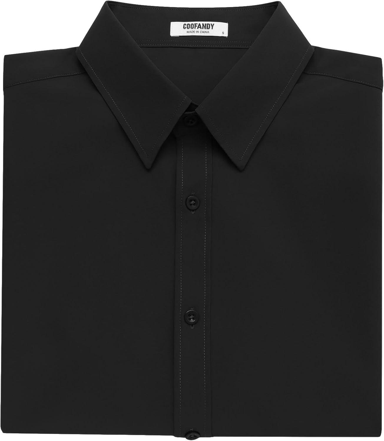 COOFANDY Men’s Button Down Shirts Stain Shield Dress Shirts Short Sleeve Summer Business Casual Shirts(Black)