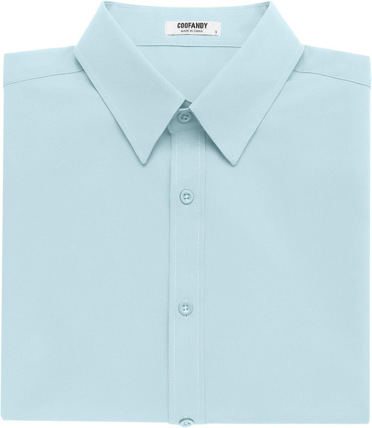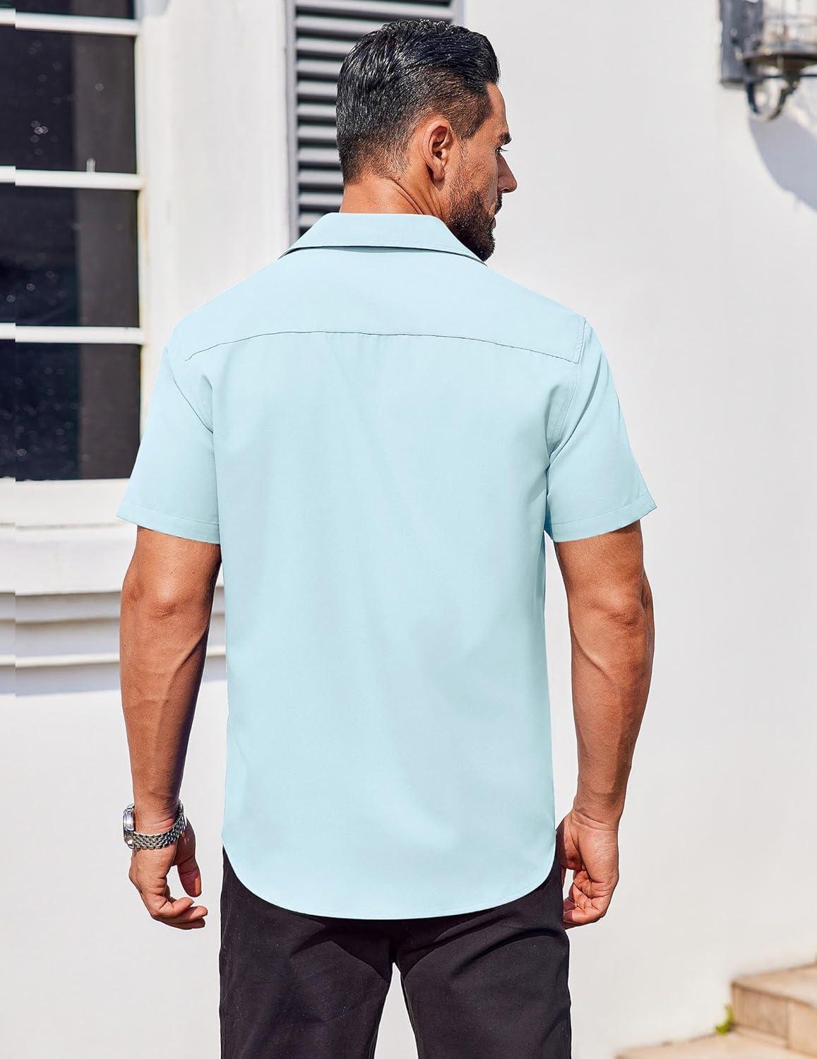 COOFANDY Men’s Button Down Shirts Stain Shield Dress Shirts Short Sleeve Summer Business Casual Shirts(Light Blue)