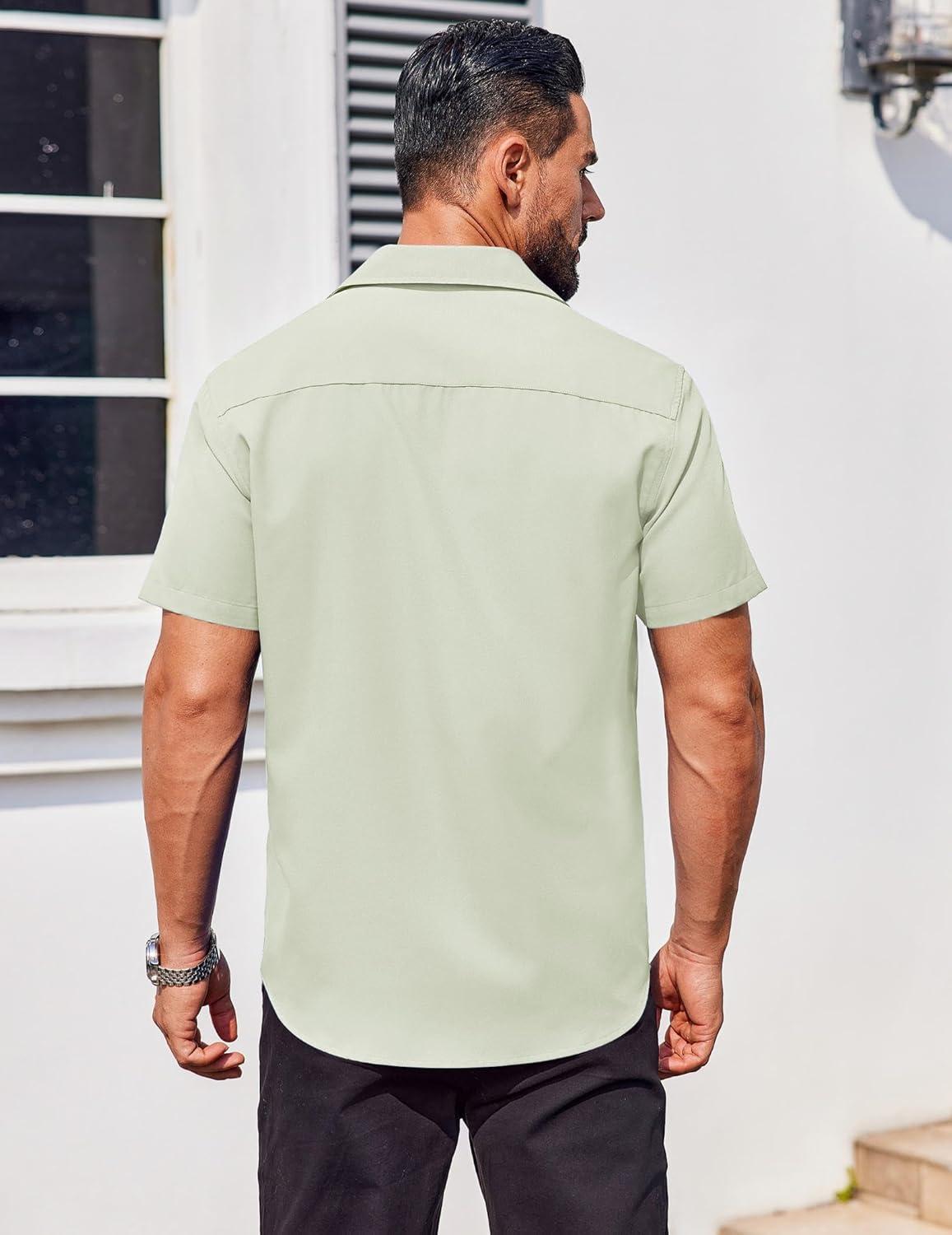 COOFANDY Men’s Button Down Shirts Stain Shield Dress Shirts Short Sleeve Summer Business Casual Shirts(Light Green)