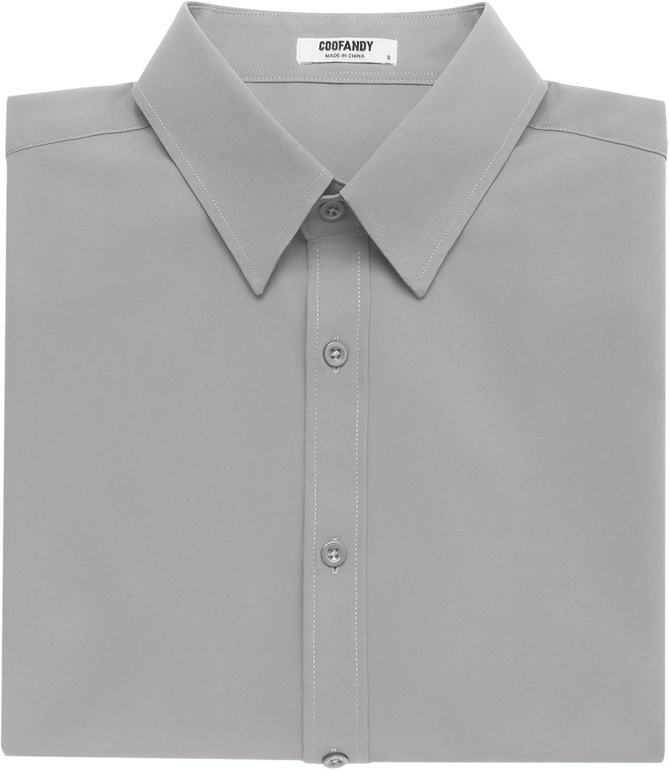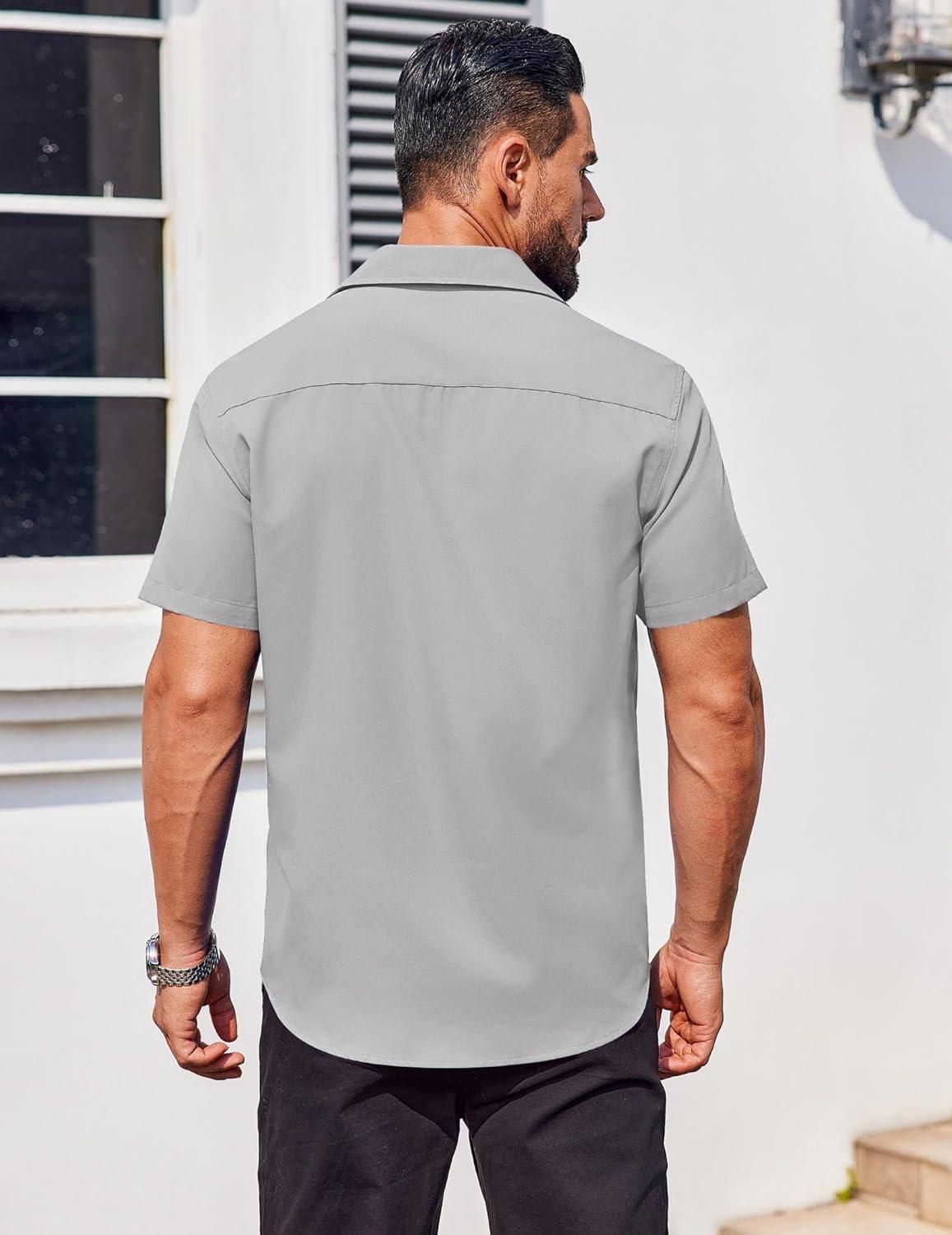 COOFANDY Men’s Button Down Shirts Stain Shield Dress Shirts Short Sleeve Summer Business Casual Shirts(Light Grey)
