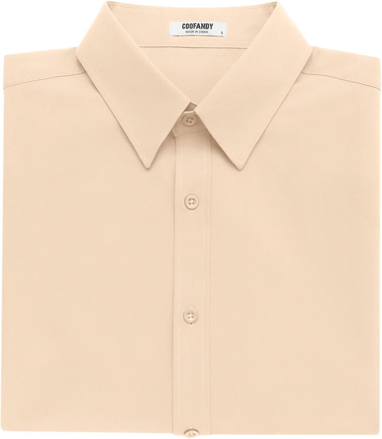 COOFANDY Men’s Button Down Shirts Stain Shield Dress Shirts Short Sleeve Summer Business Casual Shirts(Light Khaki)