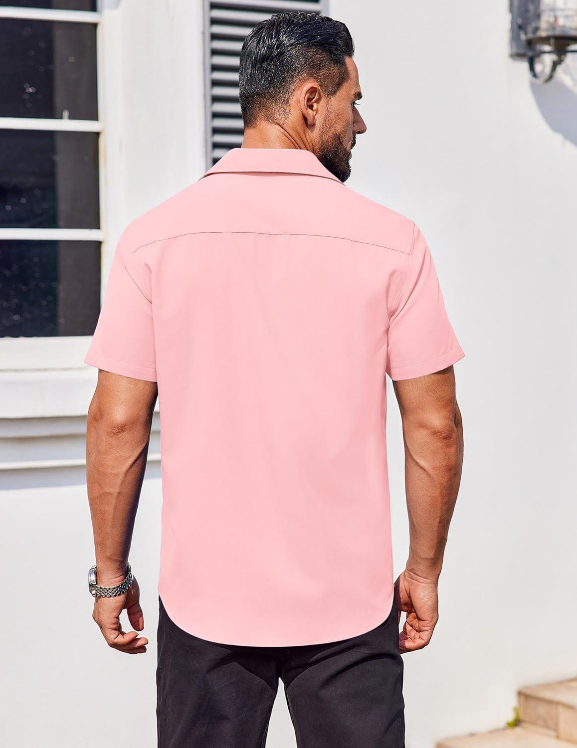COOFANDY Men’s Button Down Shirts Stain Shield Dress Shirts Short Sleeve Summer Business Casual Shirts(Light Pink)