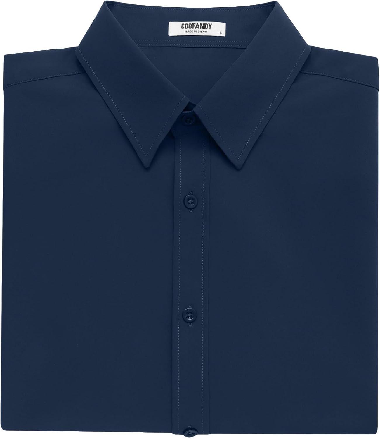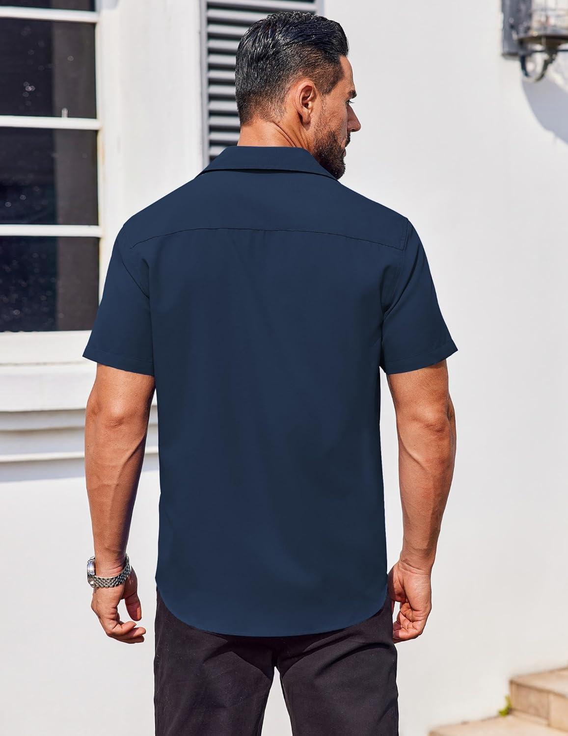 COOFANDY Men’s Button Down Shirts Stain Shield Dress Shirts Short Sleeve Summer Business Casual Shirts(Navy Blue)