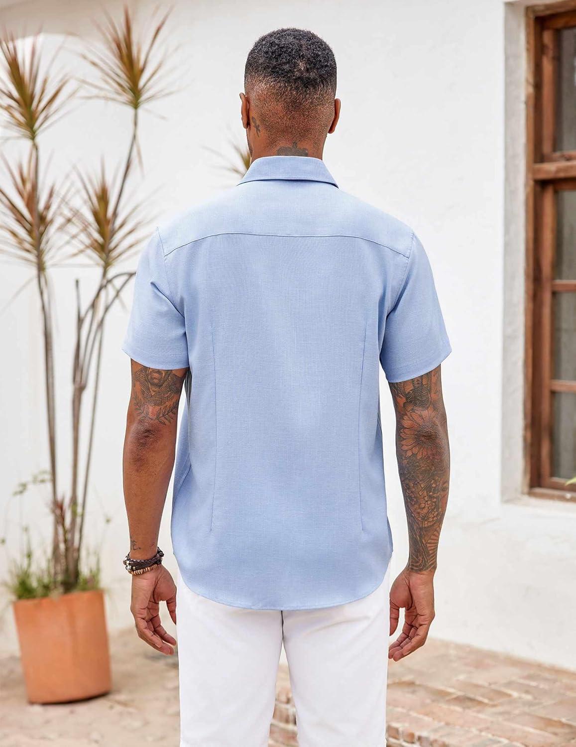 COOFANDY Men’s Button Down Shirts with Pocket – Short Sleeve Casual Shirts for Summer, Beach, Vacation & Wedding(Clear Blue – Light Brown Plaid)
