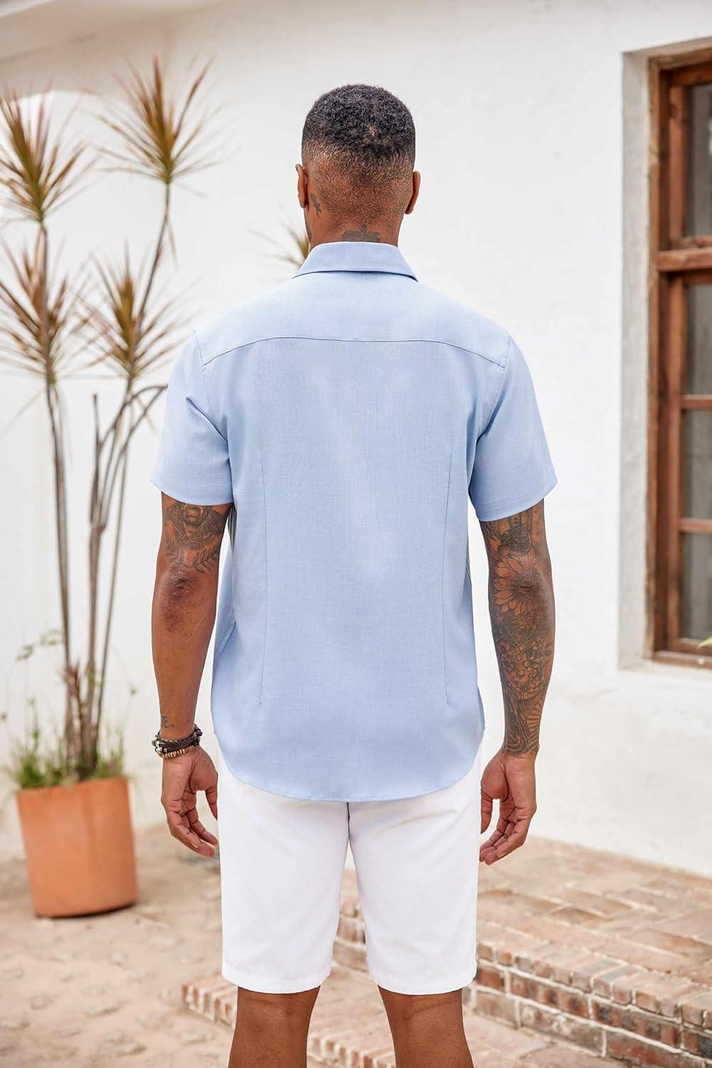 COOFANDY Men’s Button Down Shirts with Pocket – Short Sleeve Casual Shirts for Summer, Beach, Vacation & Wedding(Clear Blue)