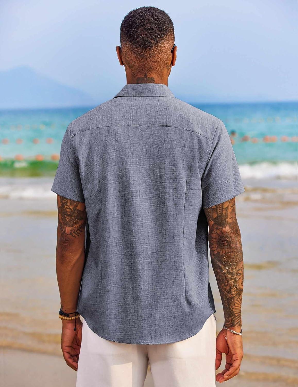 COOFANDY Men’s Button Down Shirts with Pocket – Short Sleeve Casual Shirts for Summer, Beach, Vacation & Wedding(Dark Blue)
