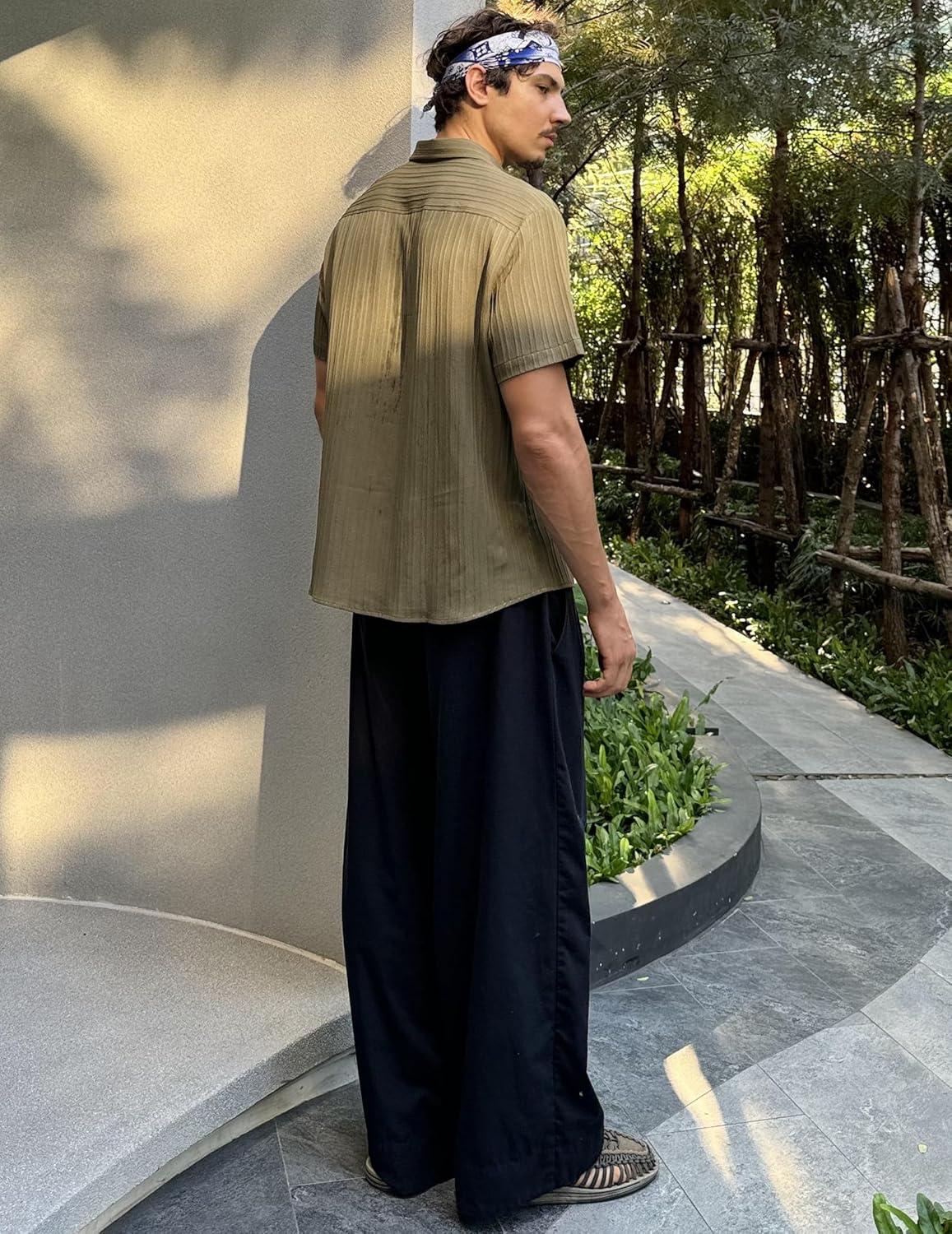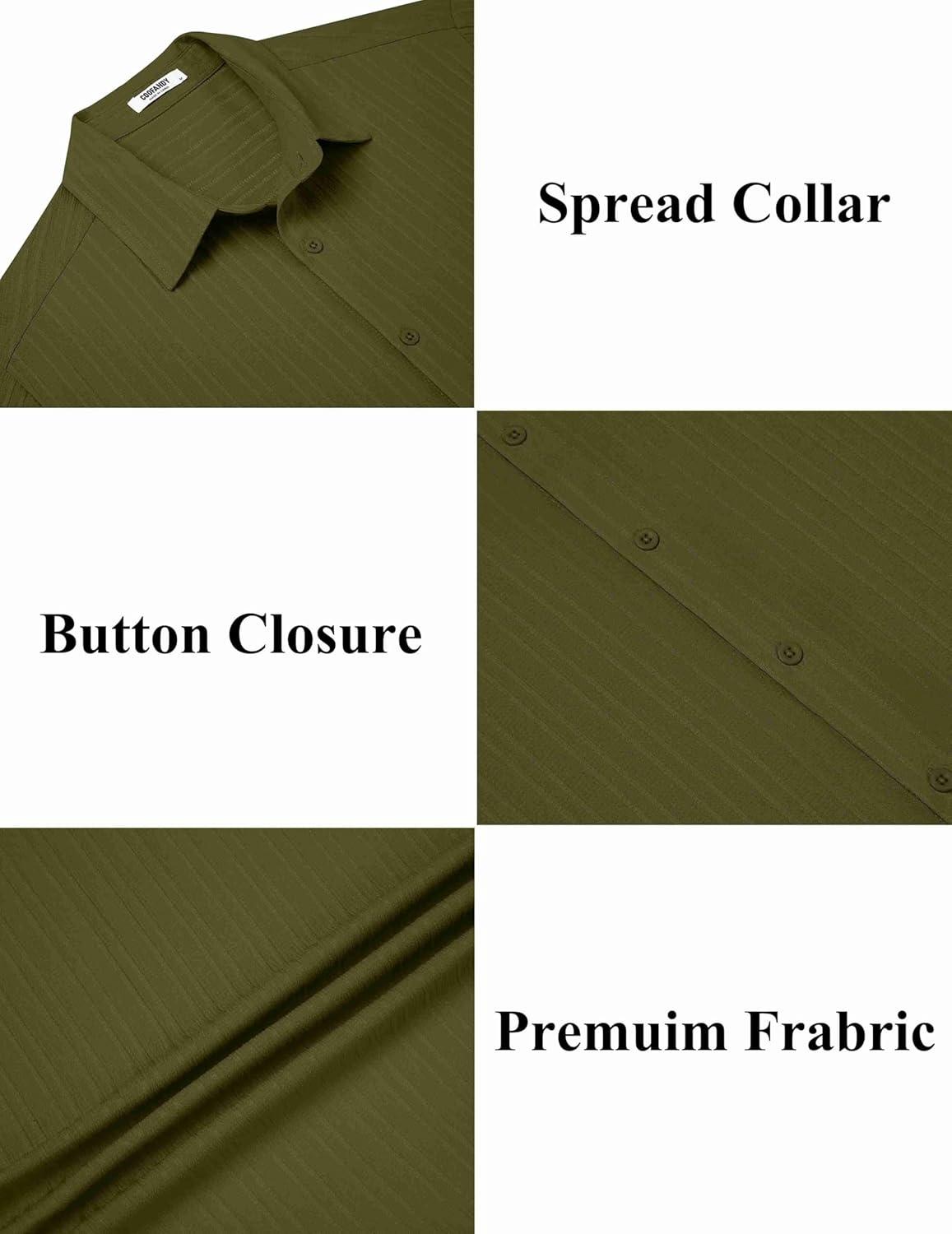 COOFANDY Mens Button Down Short Sleeve Shirt Casual Beach Shirt Summer Vacation Textured Shirts(Army Green)