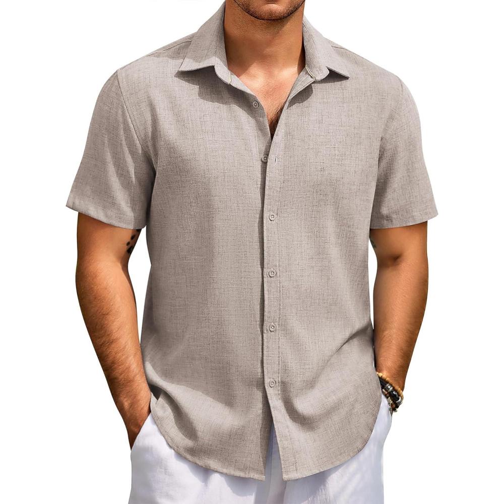 COOFANDY Mens Button Down Short Sleeve Shirt Casual Beach Shirt Summer Vacation Textured Shirts(Champagne)