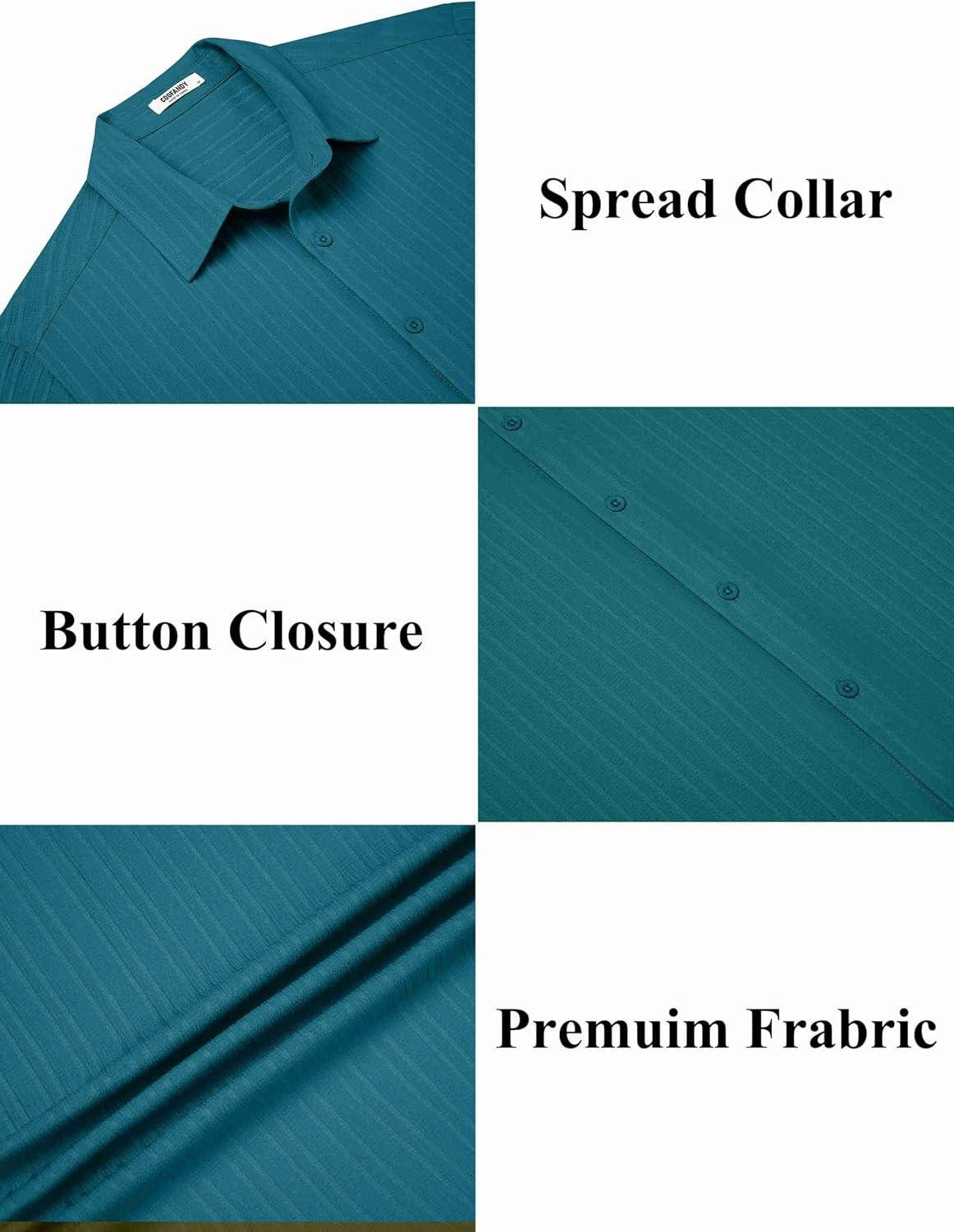COOFANDY Mens Button Down Short Sleeve Shirt Casual Beach Shirt Summer Vacation Textured Shirts(Lake Blue)