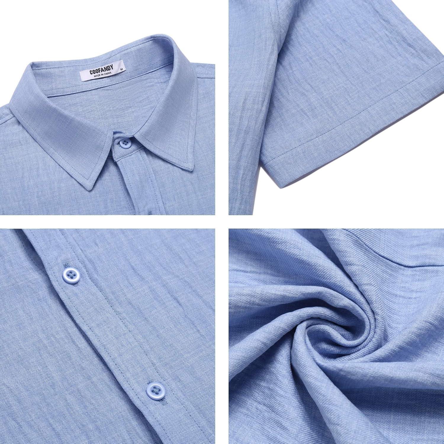 COOFANDY Mens Button Down Short Sleeve Shirt Casual Beach Shirt Summer Vacation Textured Shirts(Light Blue)