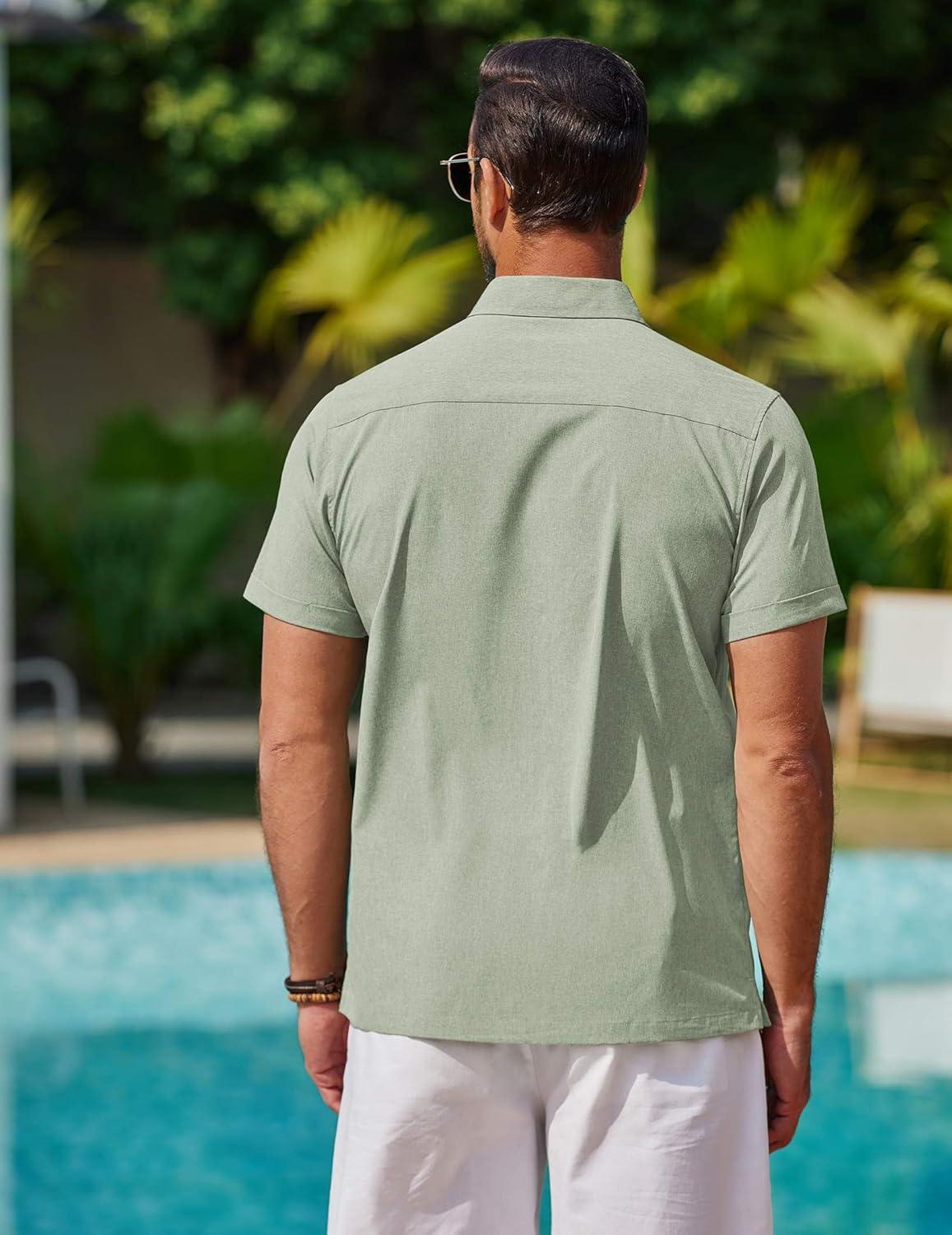 COOFANDY Men’s Button Down Short Sleeve Shirt Casual Cotton Summer Beach Linen Wedding Shirts with Pocket(Light Green)