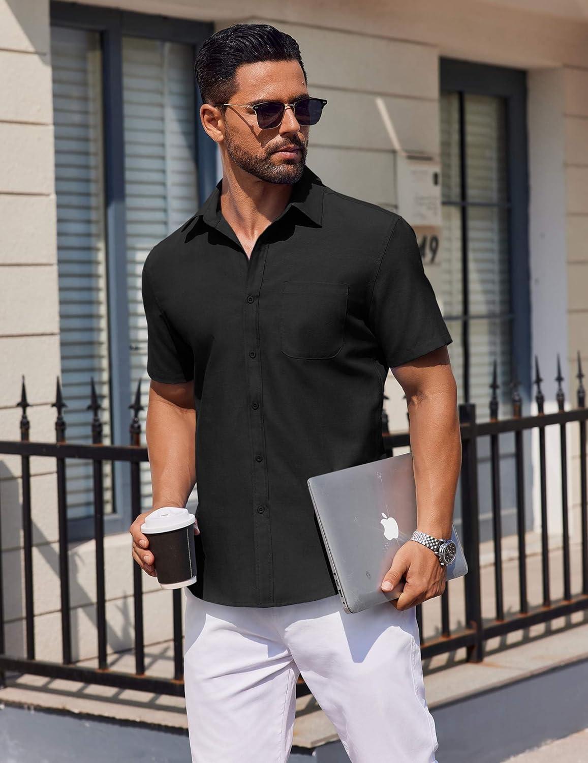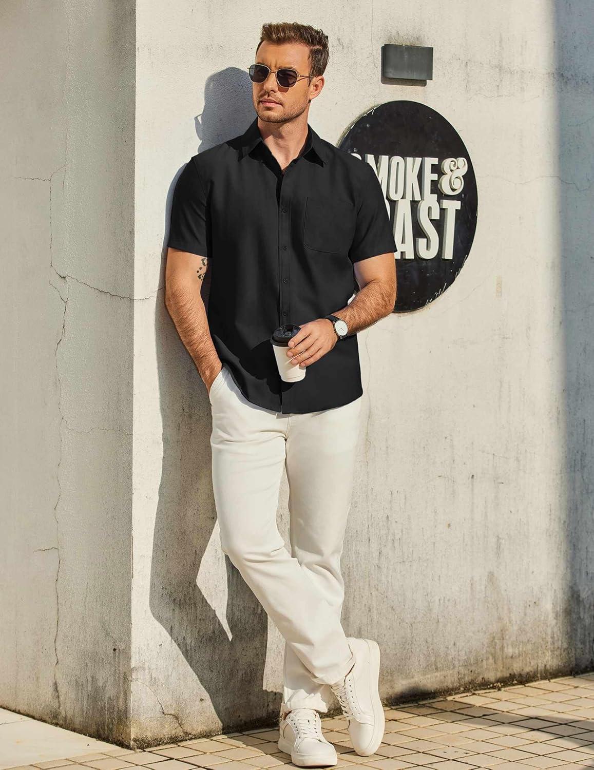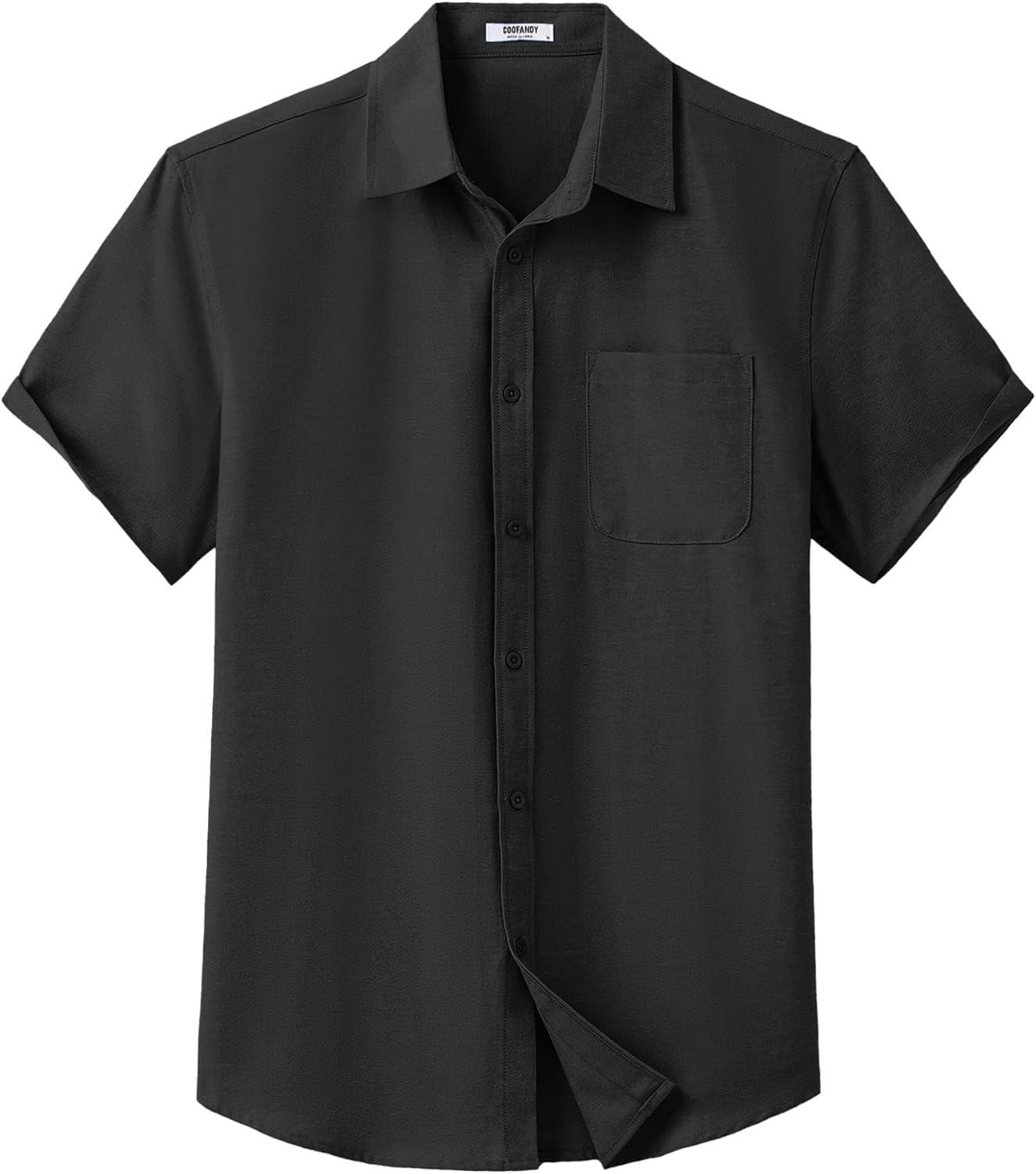 COOFANDY Mens Button Down Short Sleeve Shirt Casual Dress Shirt Untucked Summer Shirts with Pocket(Black)
