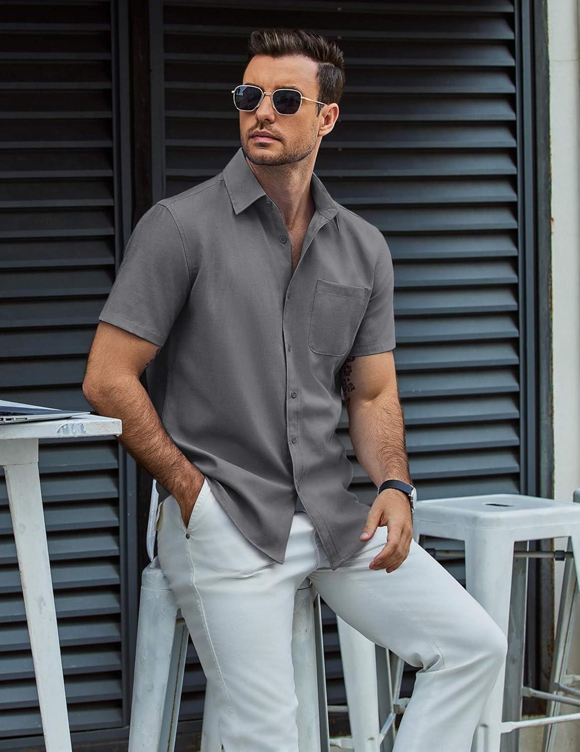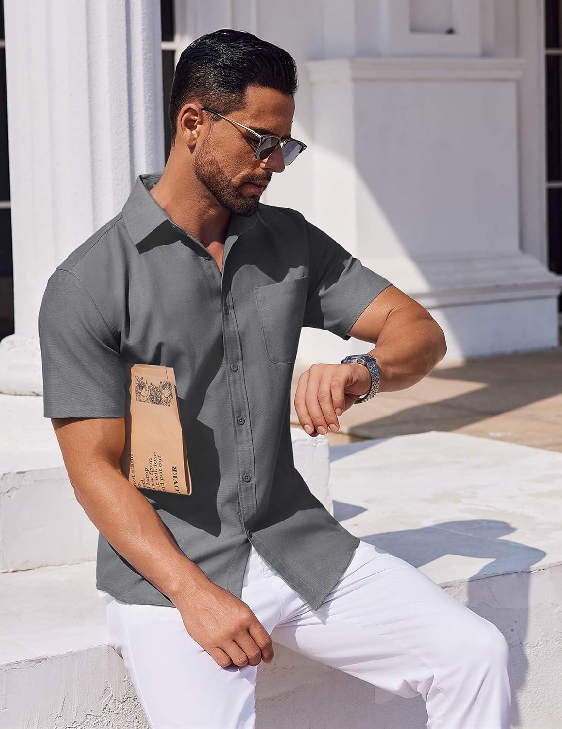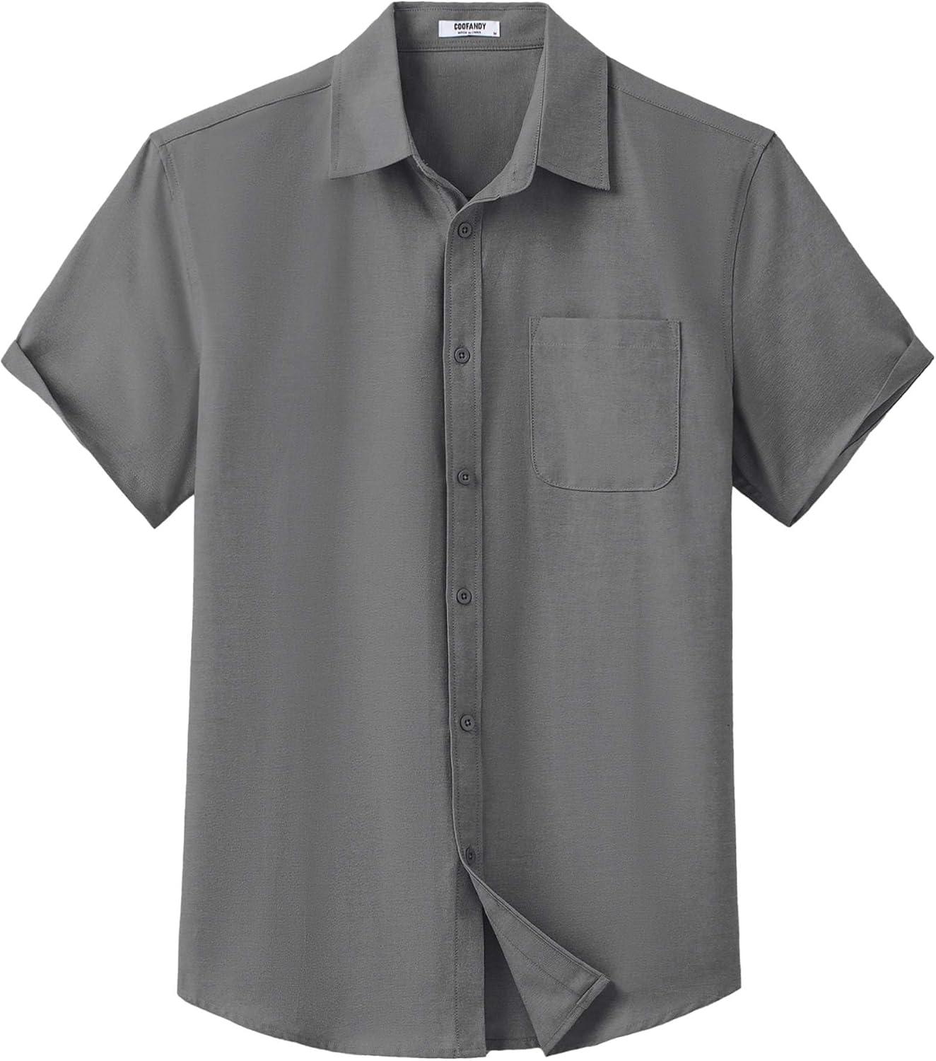 COOFANDY Mens Button Down Short Sleeve Shirt Casual Dress Shirt Untucked Summer Shirts with Pocket(Gray)