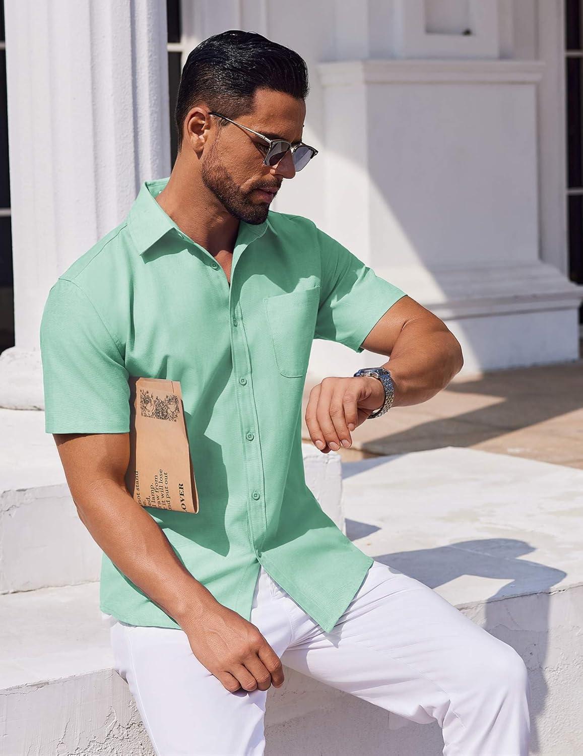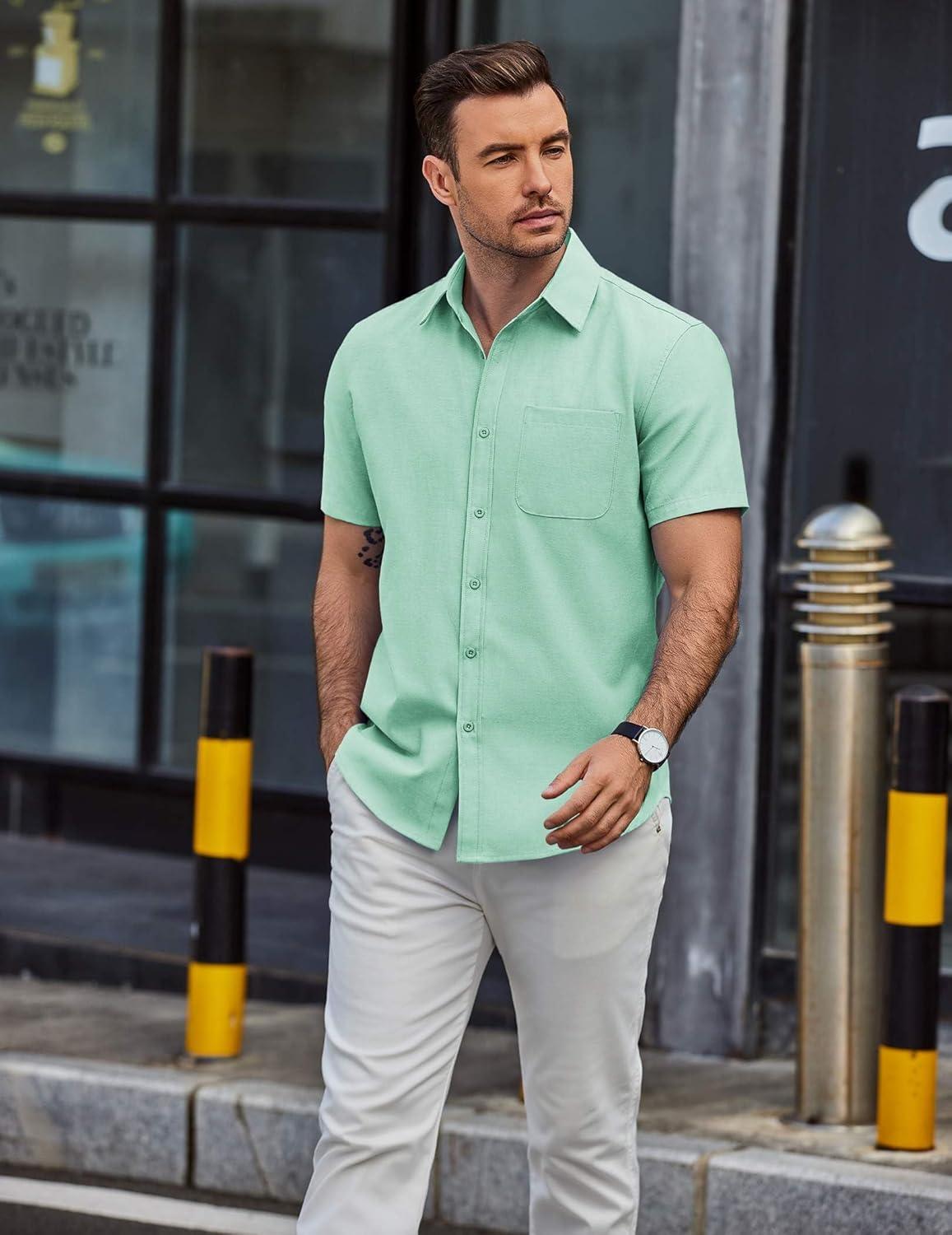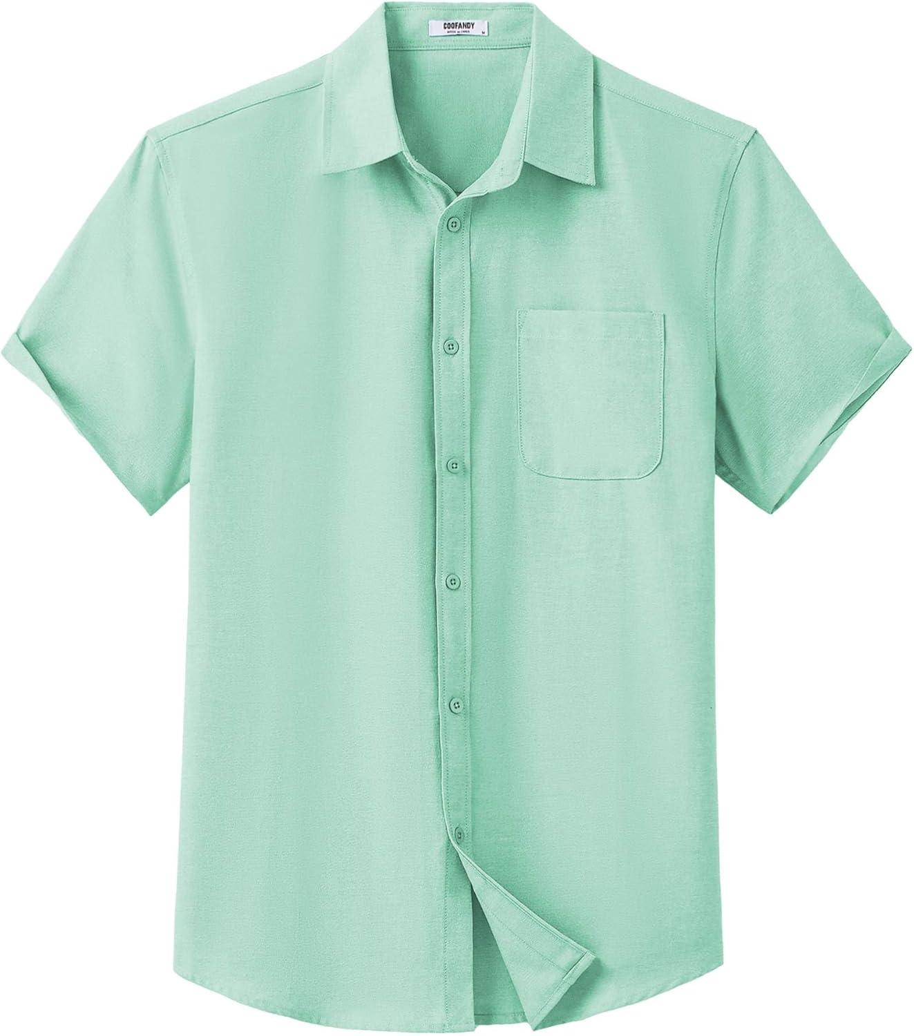 COOFANDY Mens Button Down Short Sleeve Shirt Casual Dress Shirt Untucked Summer Shirts with Pocket(Mint Green)