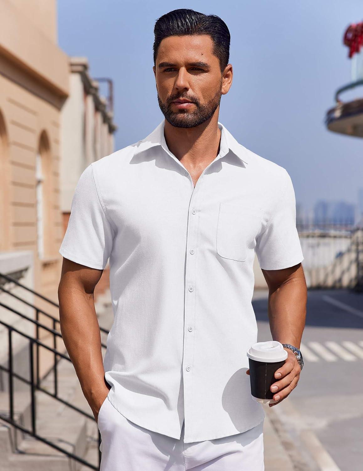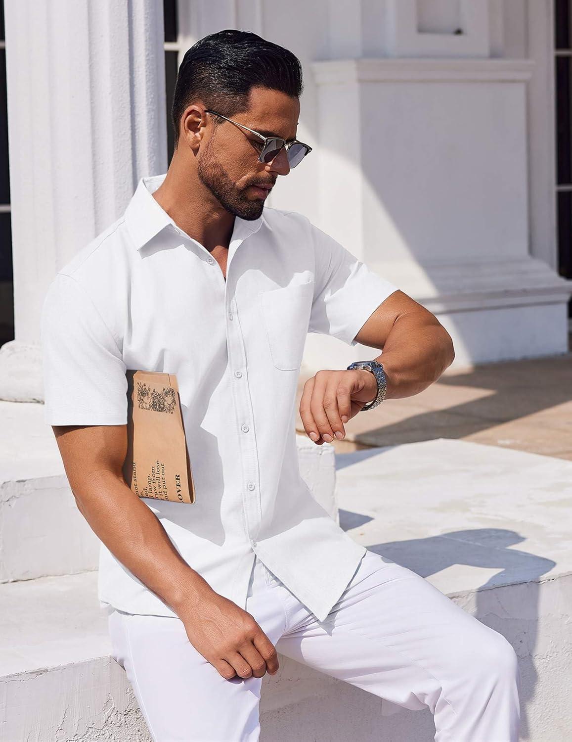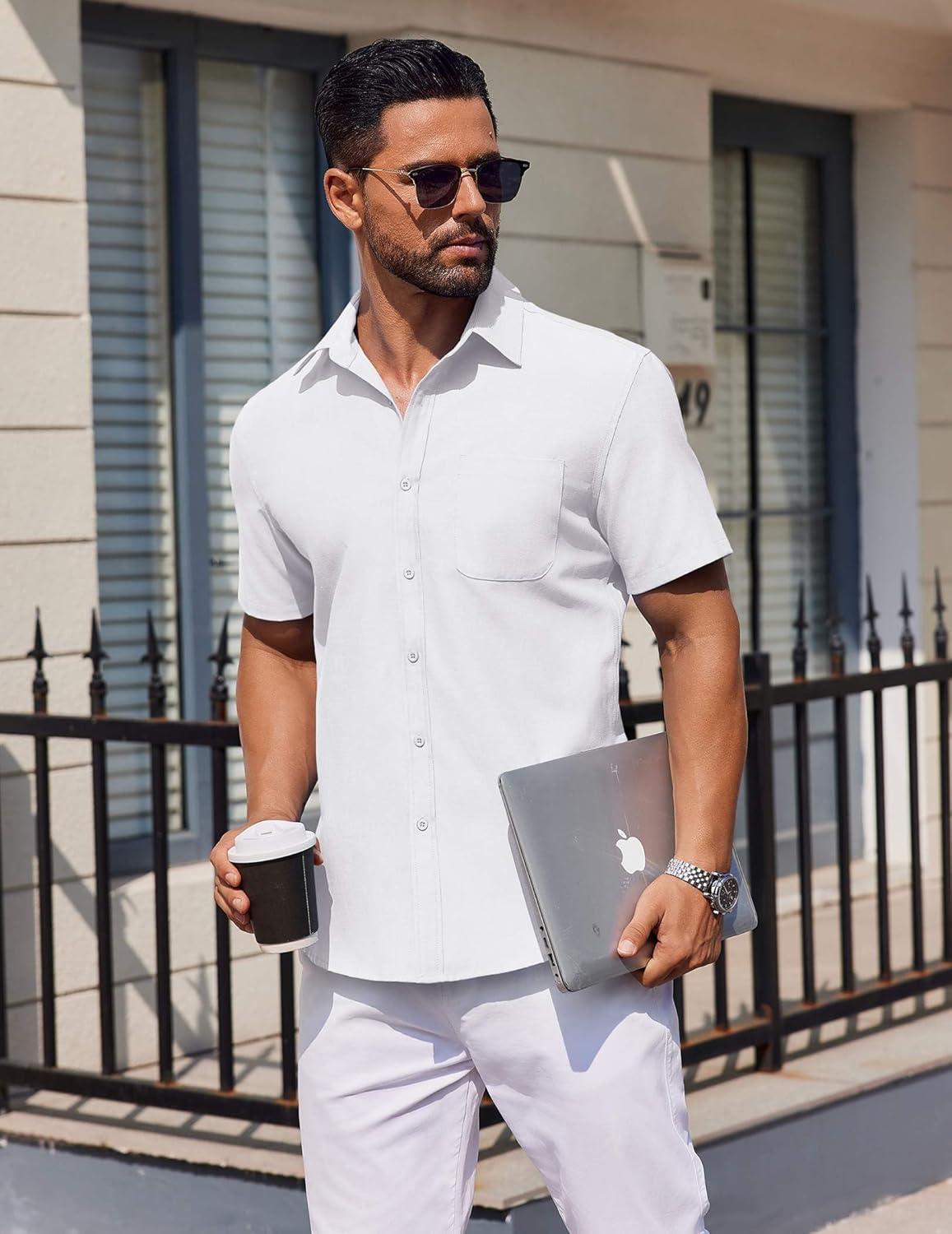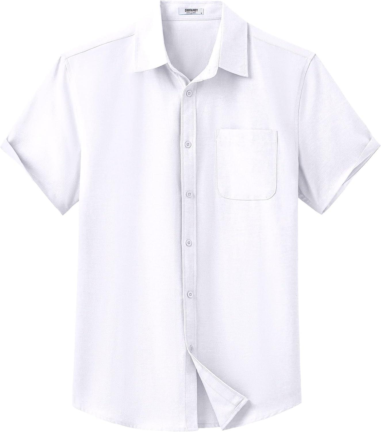 COOFANDY Mens Button Down Short Sleeve Shirt Casual Dress Shirt Untucked Summer Shirts with Pocket(White)