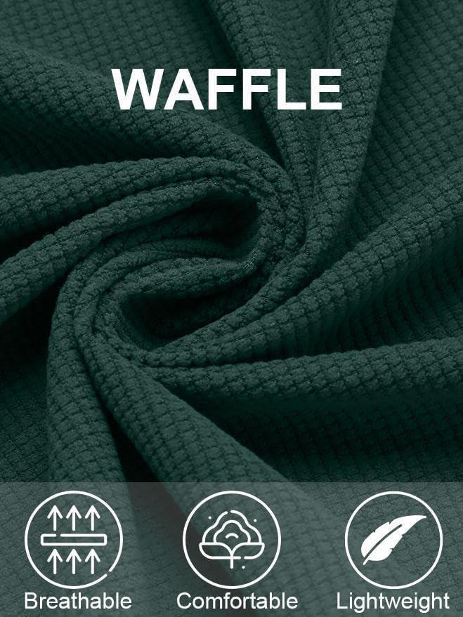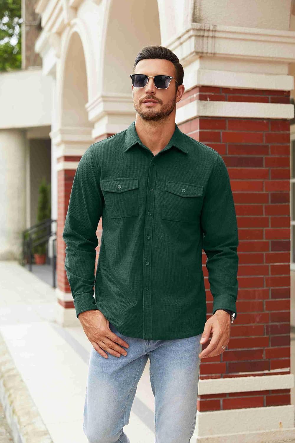 COOFANDY Men’s Button Down Waffle Shirt Jacket Casual Long Sleeve Shacket Lightweight Overshirts with Flap Pockets(Dark Green)