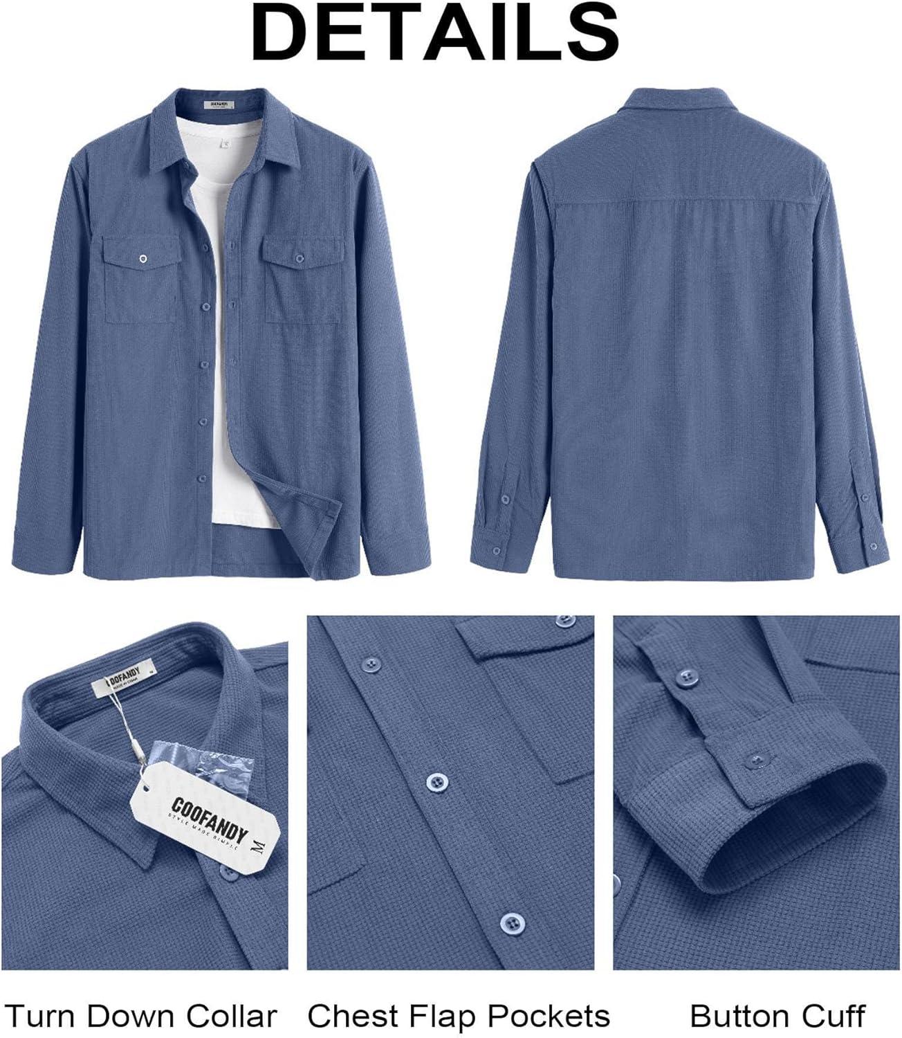 Be the first to review “COOFANDY Men’s Button Down Waffle Shirt Jacket Casual Long Sleeve Shacket Lightweight Overshirts with Flap Pockets(Denim Blue)” Cancel reply