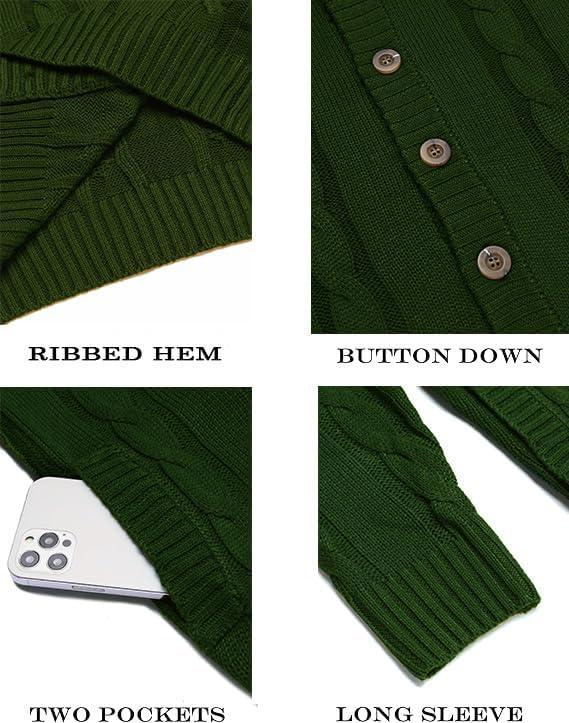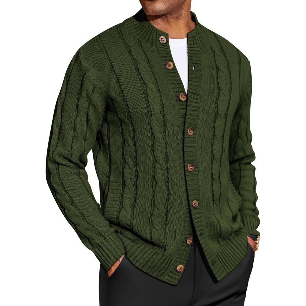 COOFANDY Men’s Cardigan Sweater Slim Fit Stand Collar Cardigan Casual Cable Knitted Button Down Sweater with Pockets(Army Green)
