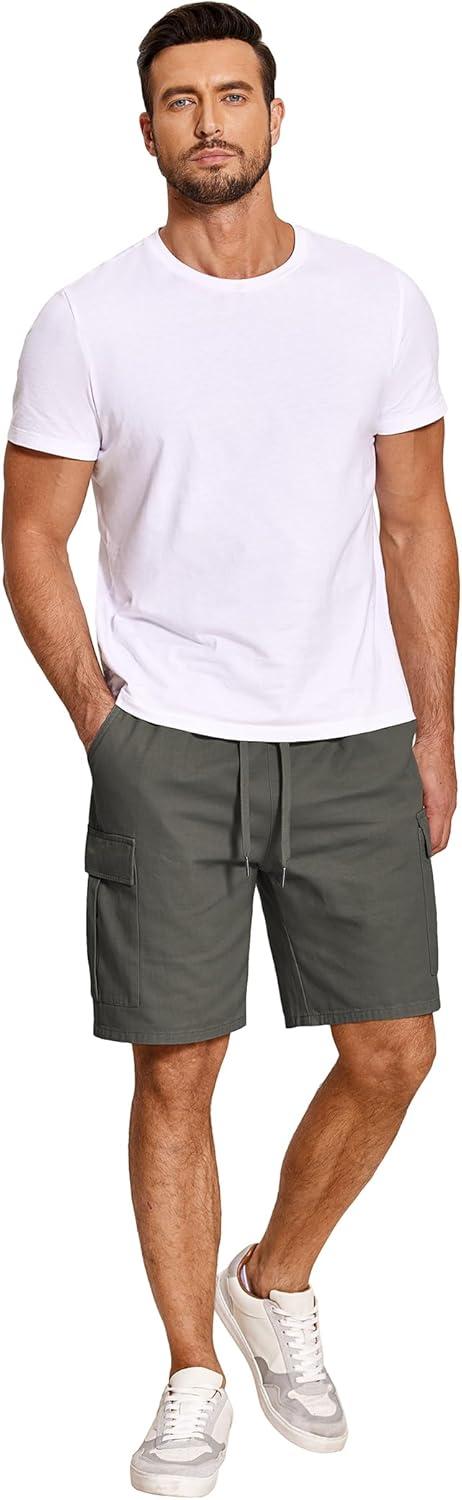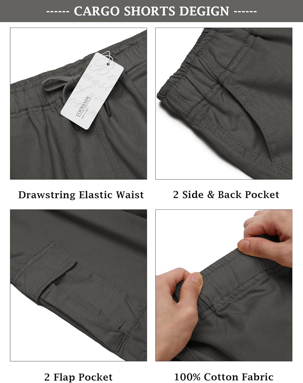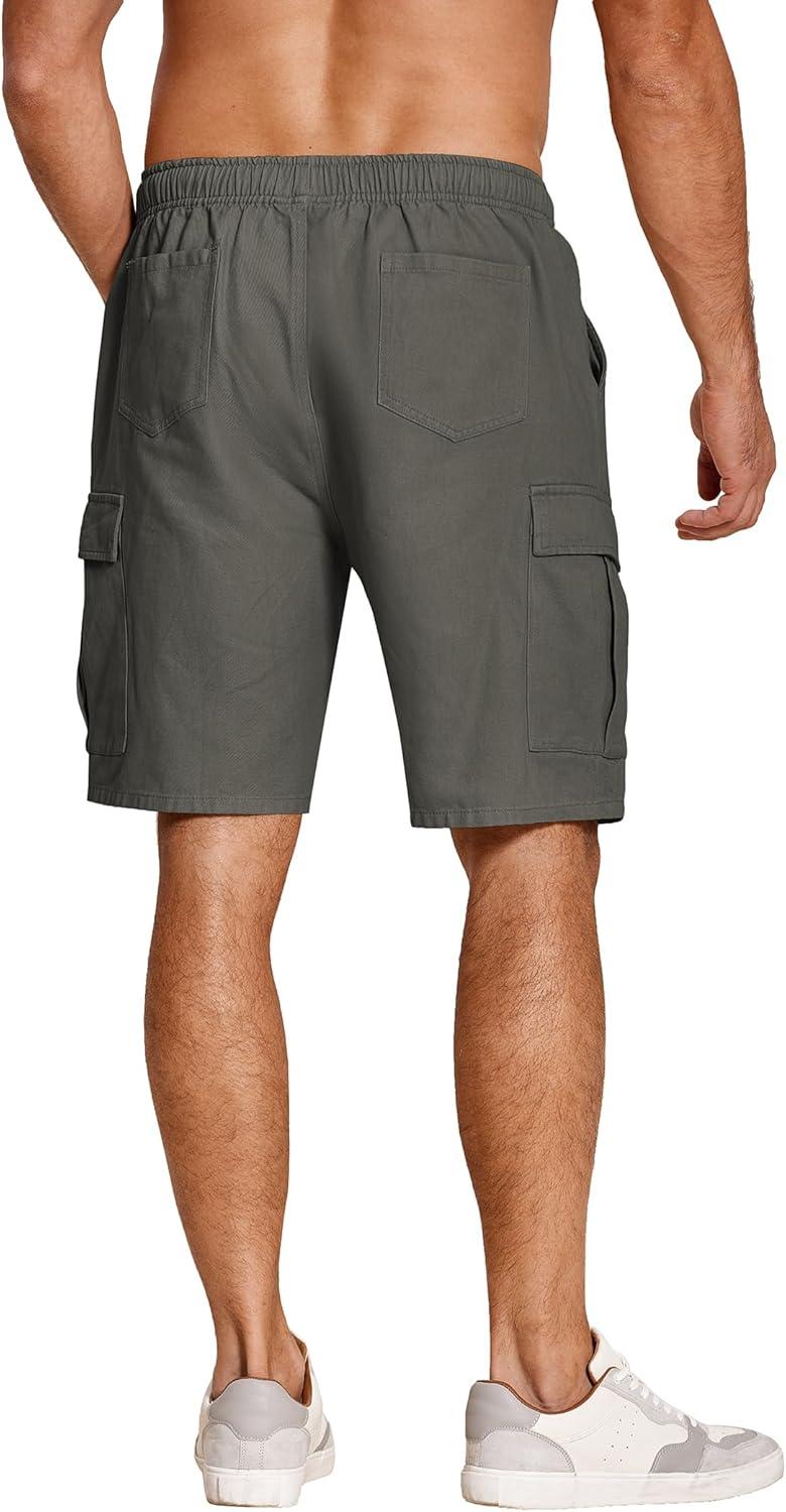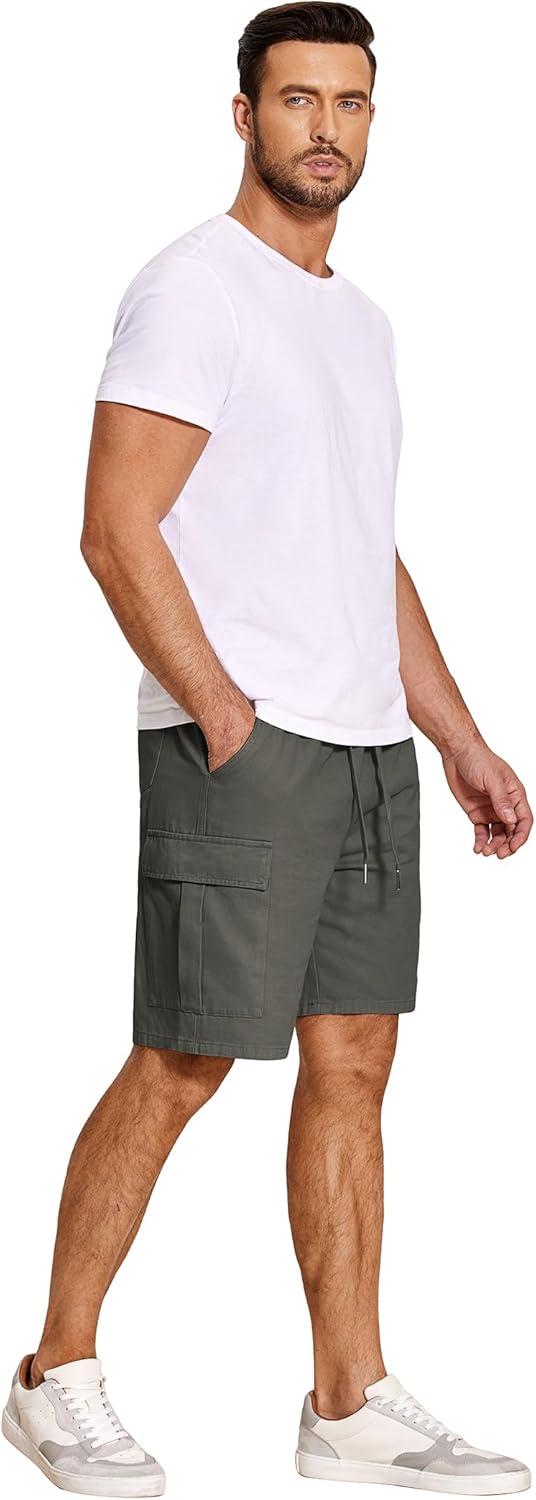 COOFANDY Men’s Cargo Shorts Elastic Waist Relaxed Fit Cotton Casual Outdoor Lightweight Work Shorts with Multi Pockets(Grey)